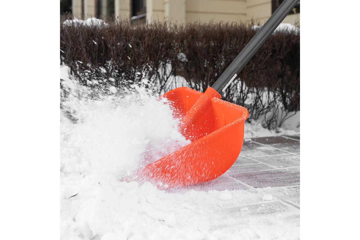 Пластиковая лопата Сибртех 61666 размером 400 х 405 х 1380 мм, со стальным черенком, используется для уборки снега на занесенных дорожках, тротуарах, подъездных путях. Вместительный усиленный ковш с высокими бортиками позволяет быстро справиться с работой. Преимущества: - Надежность — рабочая плоскость, усиленная ребрами жесткости, выдерживает повышенные нагрузки без риска излома. - Высокий ресурс — ковш из морозостойкого полипропилена сохраняет рабочие свойства при температуре до -30 °C. - Устойчивость к истиранию — кромка ковша защищена алюминиевой окантовкой, которая легко проникает в плотный снег и наст. - Защита от механических воздействий и коррозии — алюминиевая накладка покрыта порошковой эмалью.