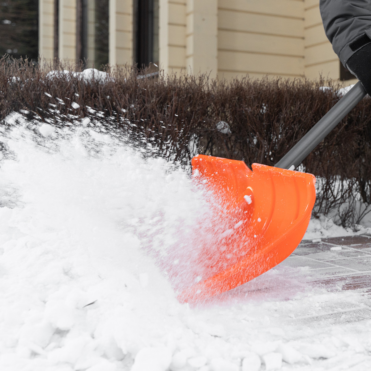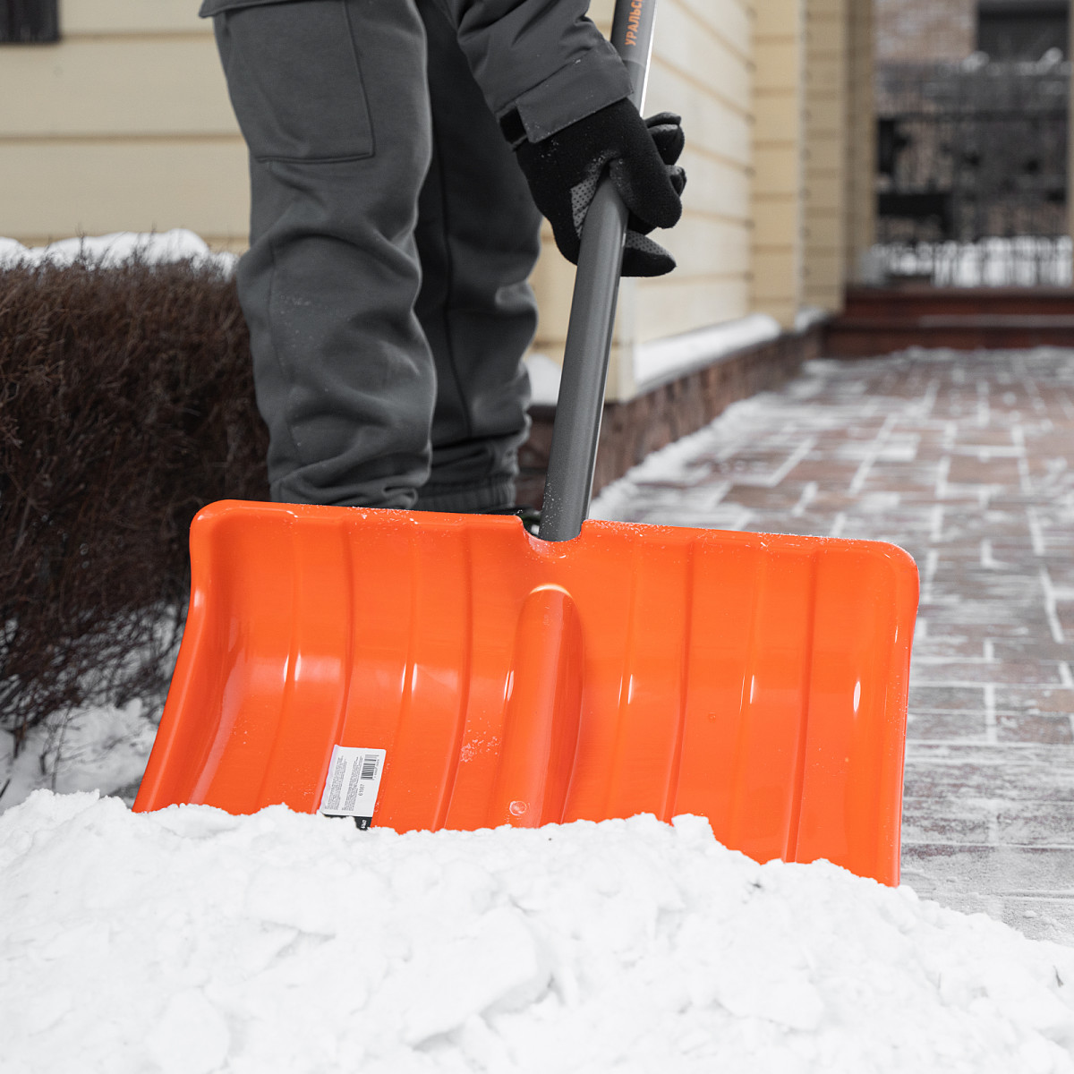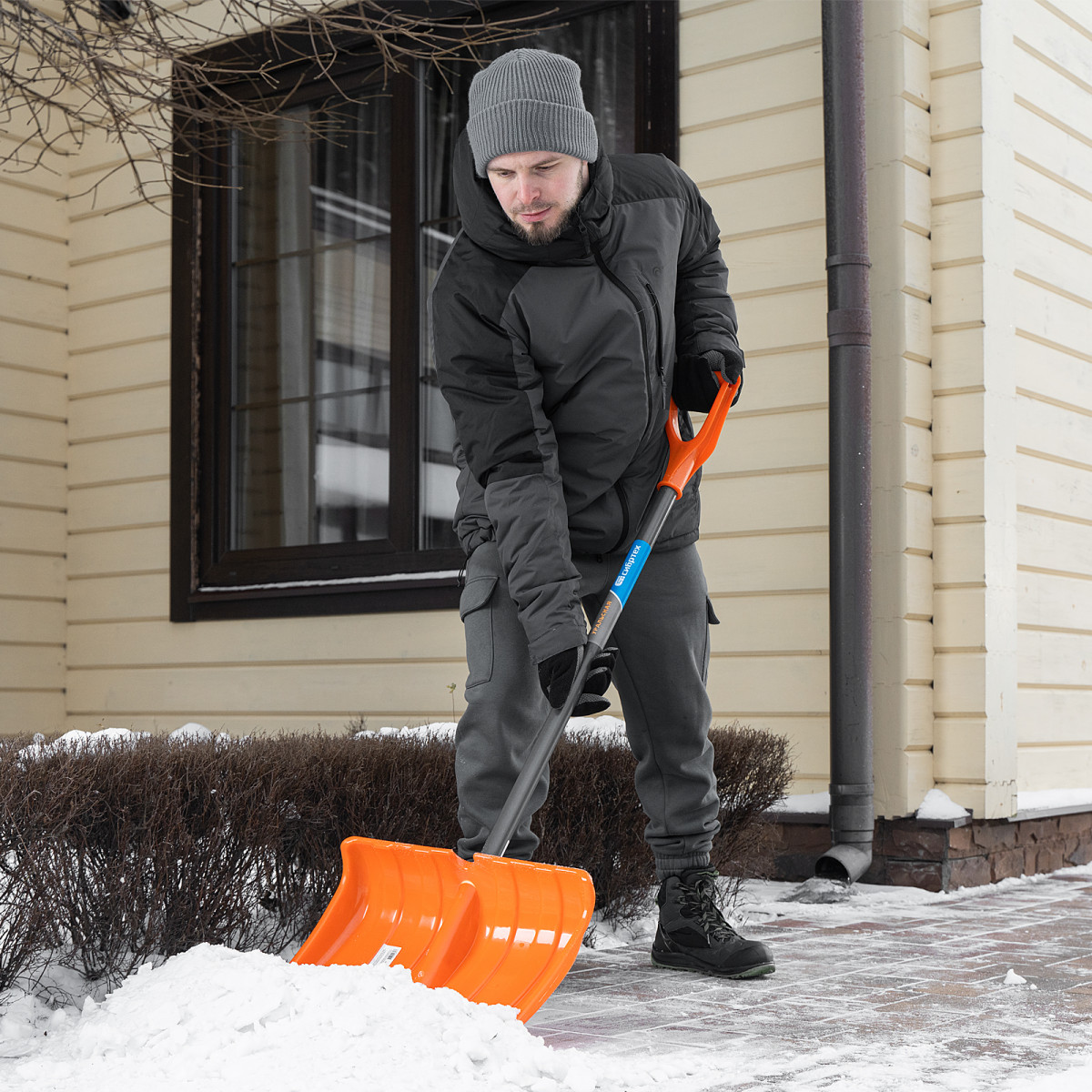Лопата для уборки снега пластиковая, 490х370х1350 мм, стальной черенок, усиленная Сибртех