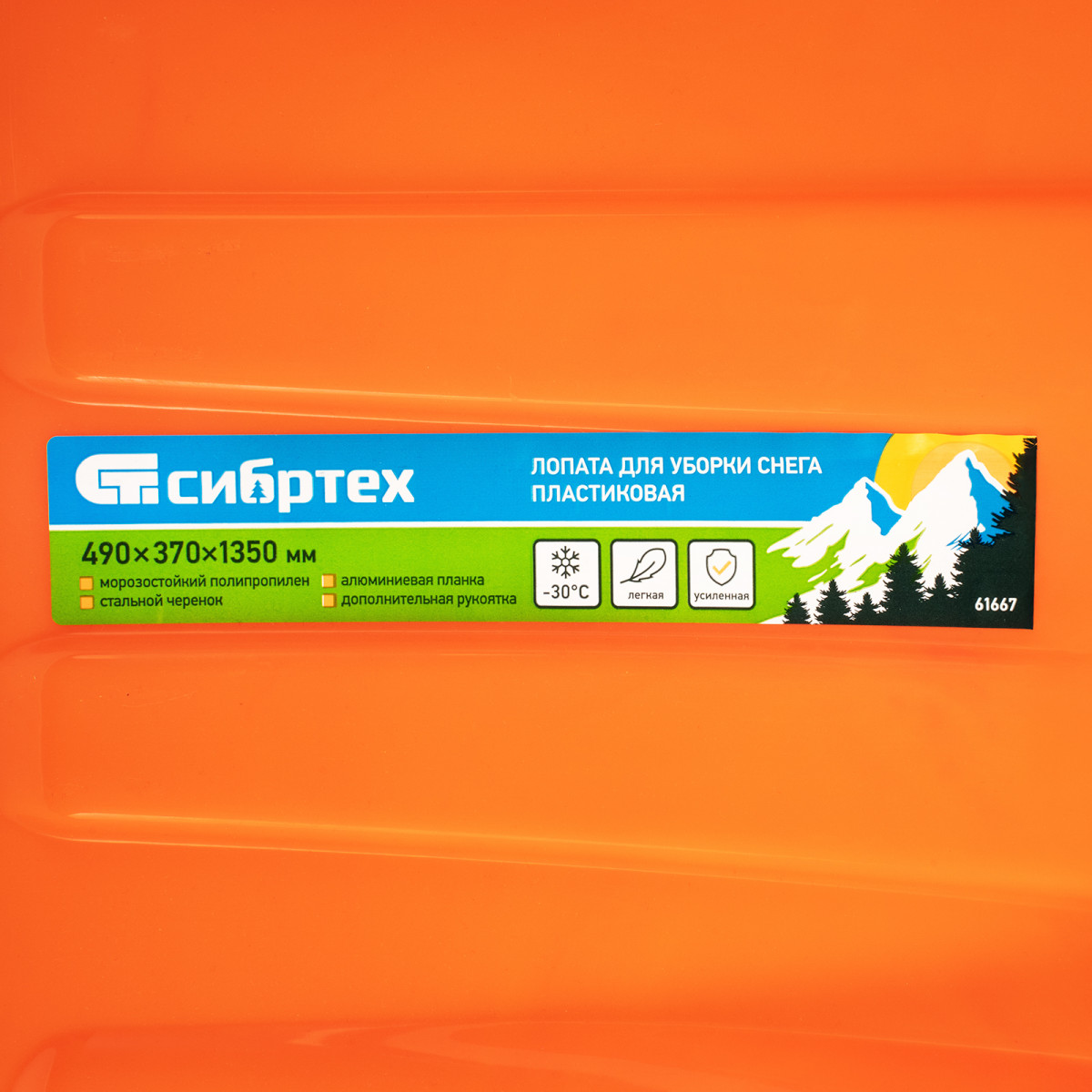 Усиленная пластиковая лопата Сибртех 61667 размером 490 х 370 х 1350 мм, установленная на стальной черенок, используется для уборки снега на занесенных дорожках, тротуарах, подъездных путях. Вместительный ковш с высокими бортиками упрощает уборку. Лопата пригодится владельцам дачных участков, гаражей, а также сотрудникам коммунальных служб.