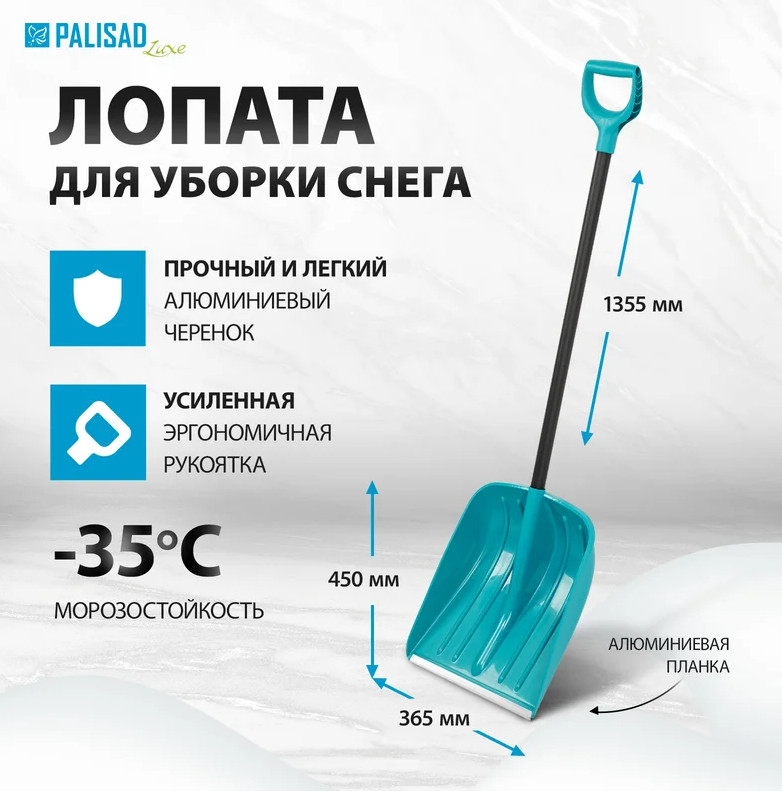 Лопата для уборки снега полипропилен 365х450х1355 мм алюминиевый черенок PALISAD