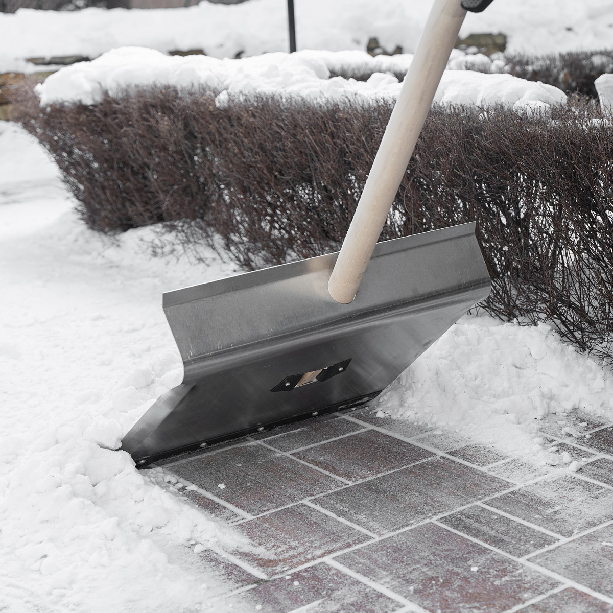 Лопата для уборки снега тротуарная, алюминиевая,500х400х1420мм, деревянный черенок, Сибртех
