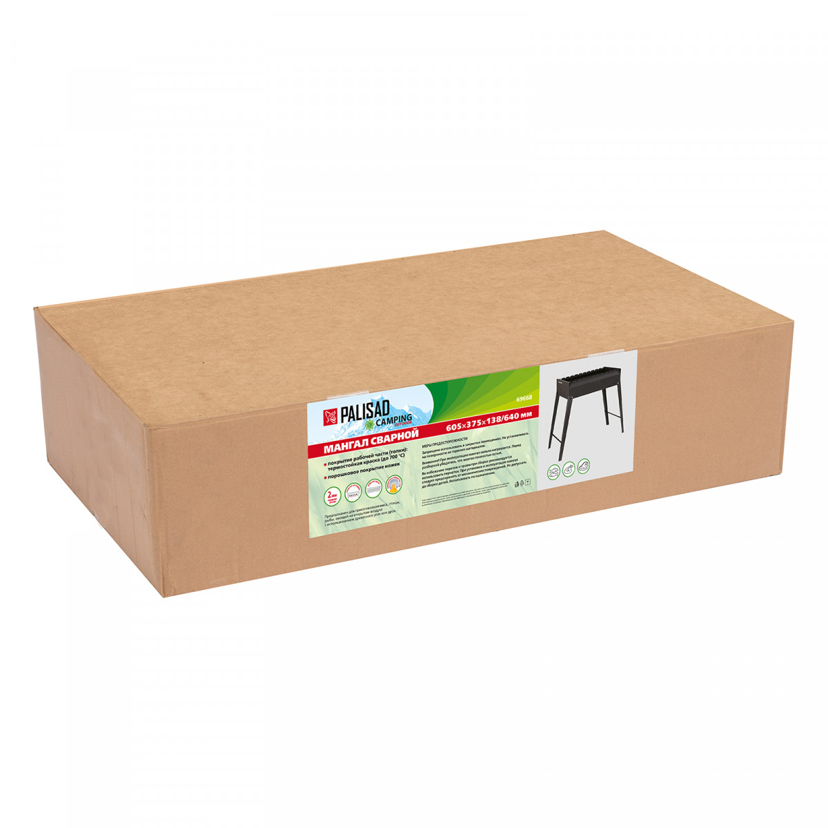 Мангал сварной, 605 х 375 х 138/640 мм, сталь 2 мм, Camping Palisad