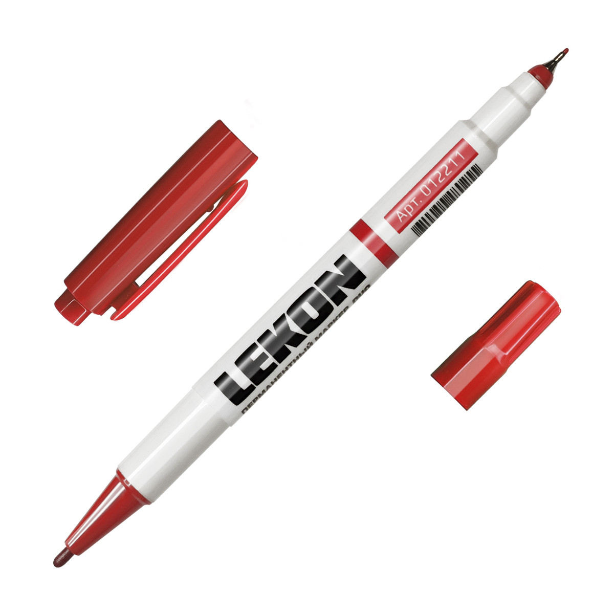 Маркер перманентный двухсторонний фетровый 0,5-1мм красный LEKON DUO