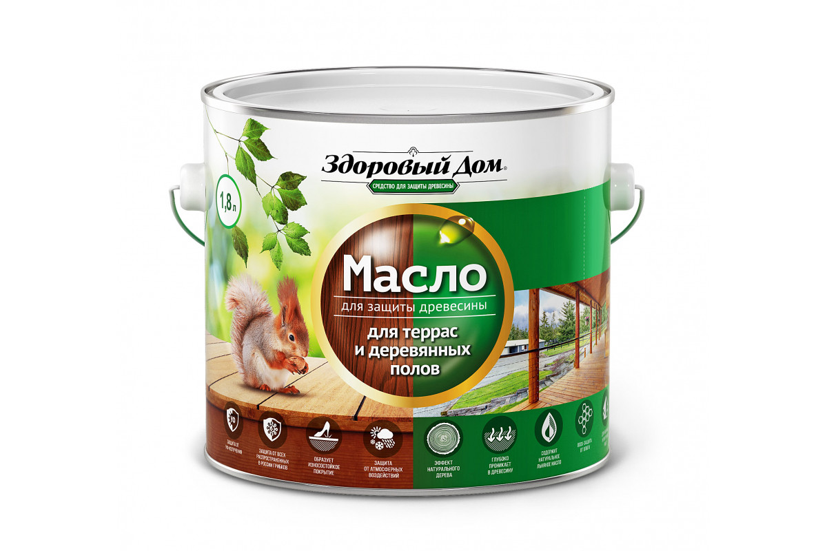 Масло для террас и деревянных полов Здоровый Дом Дуб 1,8л