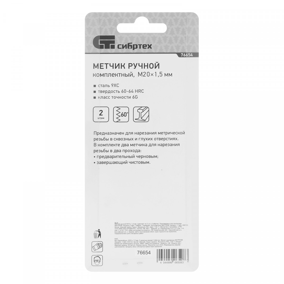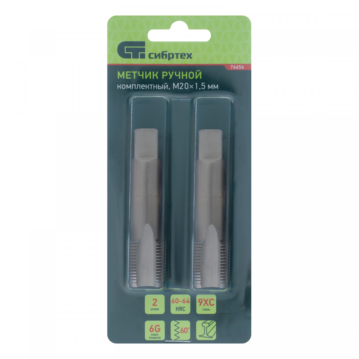 Метчик ручной М20 х 1.5 мм, комплект из 2 шт Сибртех