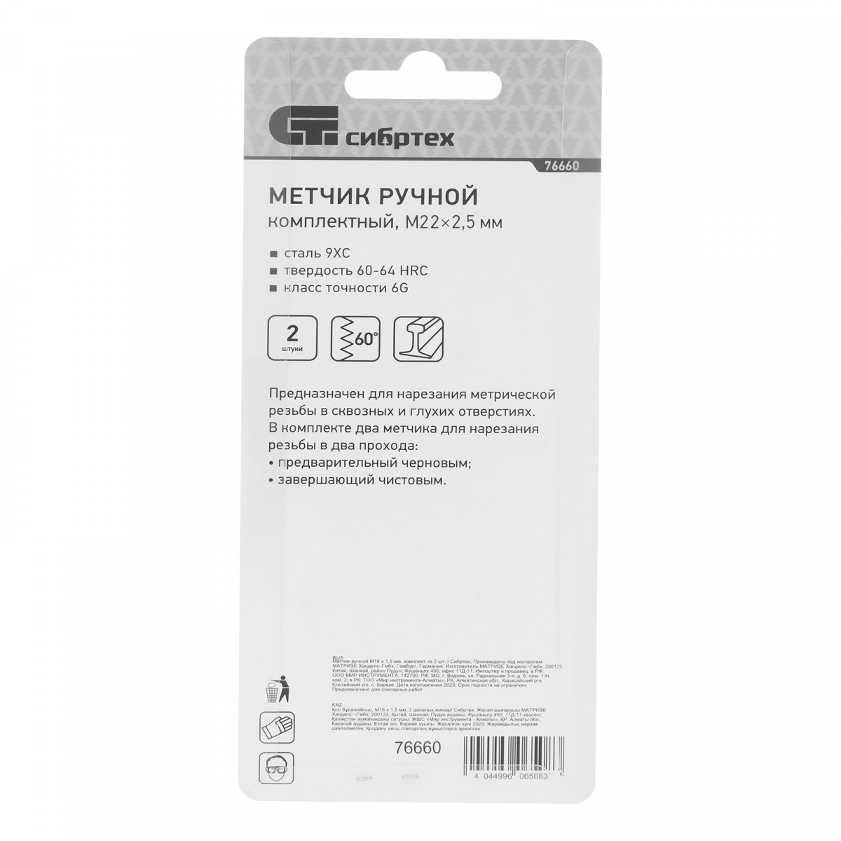 Метчик ручной М22 х 2.5 мм, комплект из 2 шт Сибртех