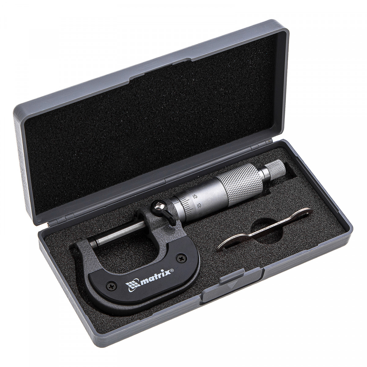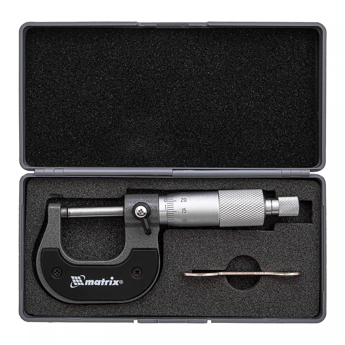 Микрометр механический Matrix 317255 используется для измерения толщины листового металла и деталей размером 0-25 мм. Обеспечивает высокую точность результатов — шаг измерения составляет 0,01 мм с допустимой погрешностью ±0,004 мм. Микрометр будет полезен на производстве, в слесарной мастерской и автосервисе.