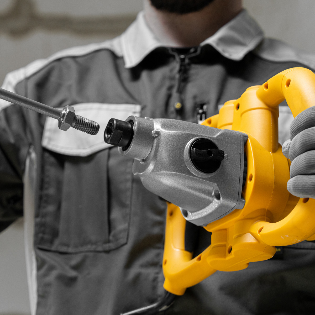 • Прочная сварная конструкция — стальной миксер выдерживает значительные нагрузки при размешивании густых составов.
