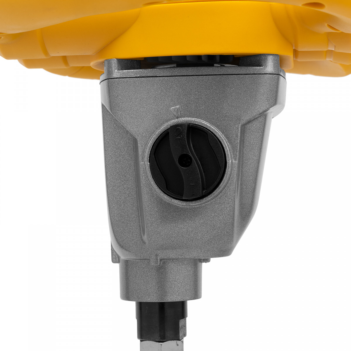 - Двухскоростной редуктор — два режима работы в диапазоне 180-460 и 300-750 об/мин позволяют эффективно смешивать растворы разной вязкости без разбрызгивания.