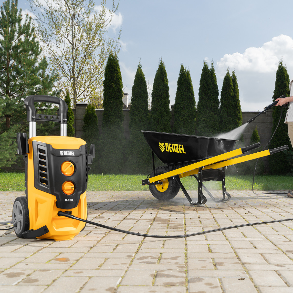 Моечная машина высокого давления R-180, 2200 Вт, 180 бар, 380 л/ч, колесная Denzel