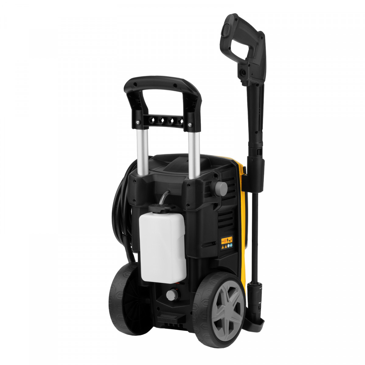 Колесная моечная машина высокого давления Denzel R-180 58238 мощностью 2200 Вт и производительностью 380 л/ч подает струю воды под давлением 180 бар и служит для очищения поверхностей. Позволяет быстро привести в порядок садовые дорожки, удалить пыль и грязь с фасада здания, автомобиля, велосипеда или мотоцикла, отмыть садовый инвентарь. Моечная машина подключается к водопроводу, а при его отсутствии может забирать воду из любого резервуара, работая в режиме самовсасывания. Устройство пригодится для поддержания порядка на загородном участке.