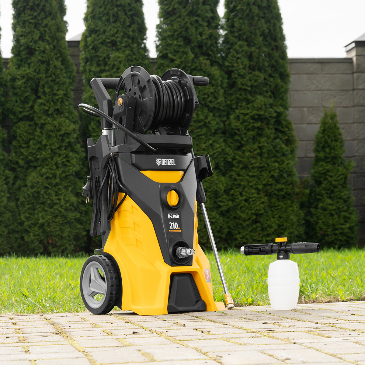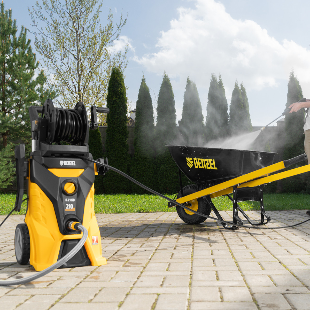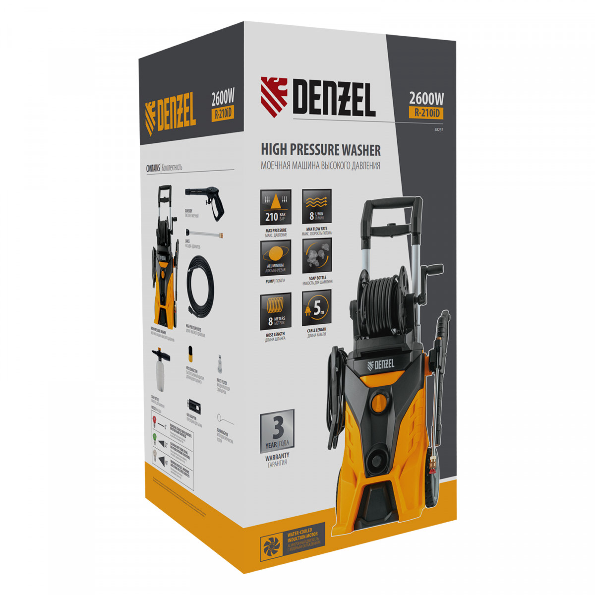 Моечная машина высокого давления R-210iD, 2600 Вт, 210 бар, 8.0 л/мин, асинхронный двигатель, барабан Denzel