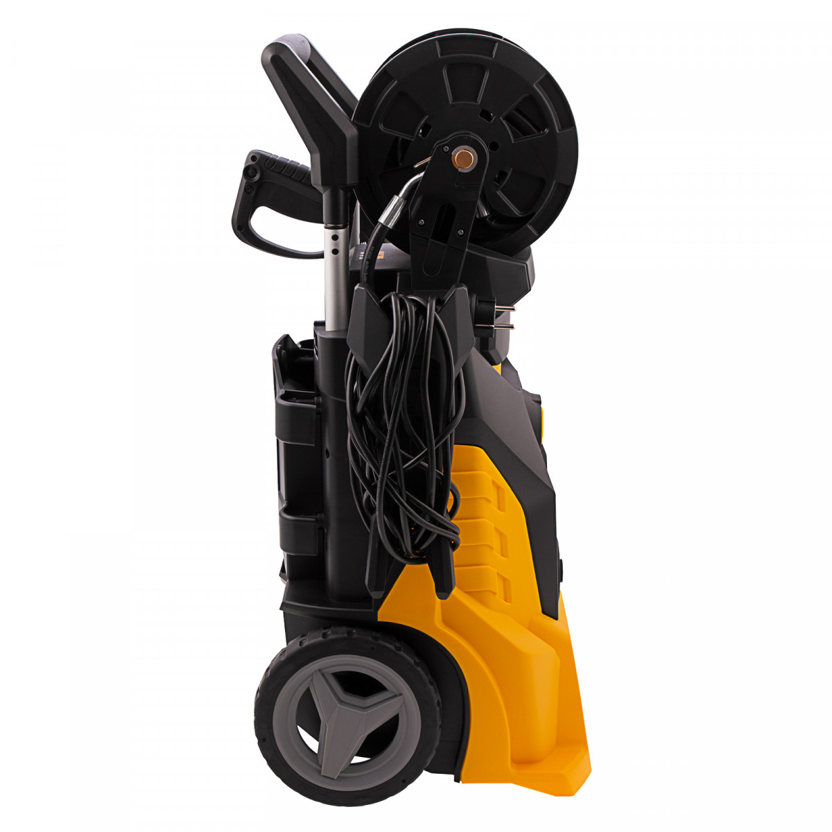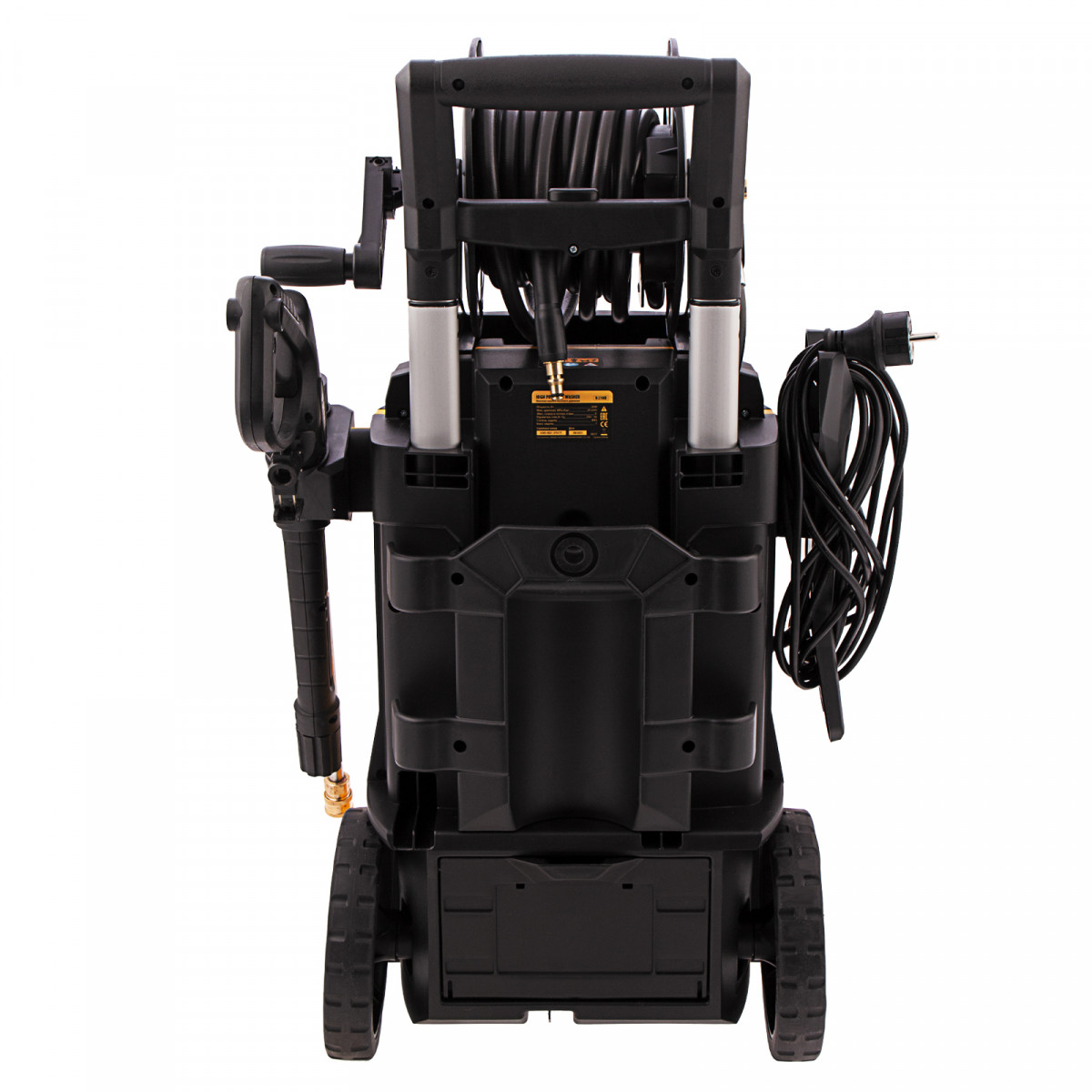 - Комфортная работа — оптимальная длина сетевого кабеля 5 м и увеличенная длина шланга 8 м предотвращают их натяжение, а катушка с ручкой позволяет избежать запутывание шланга и быстро намотать его.