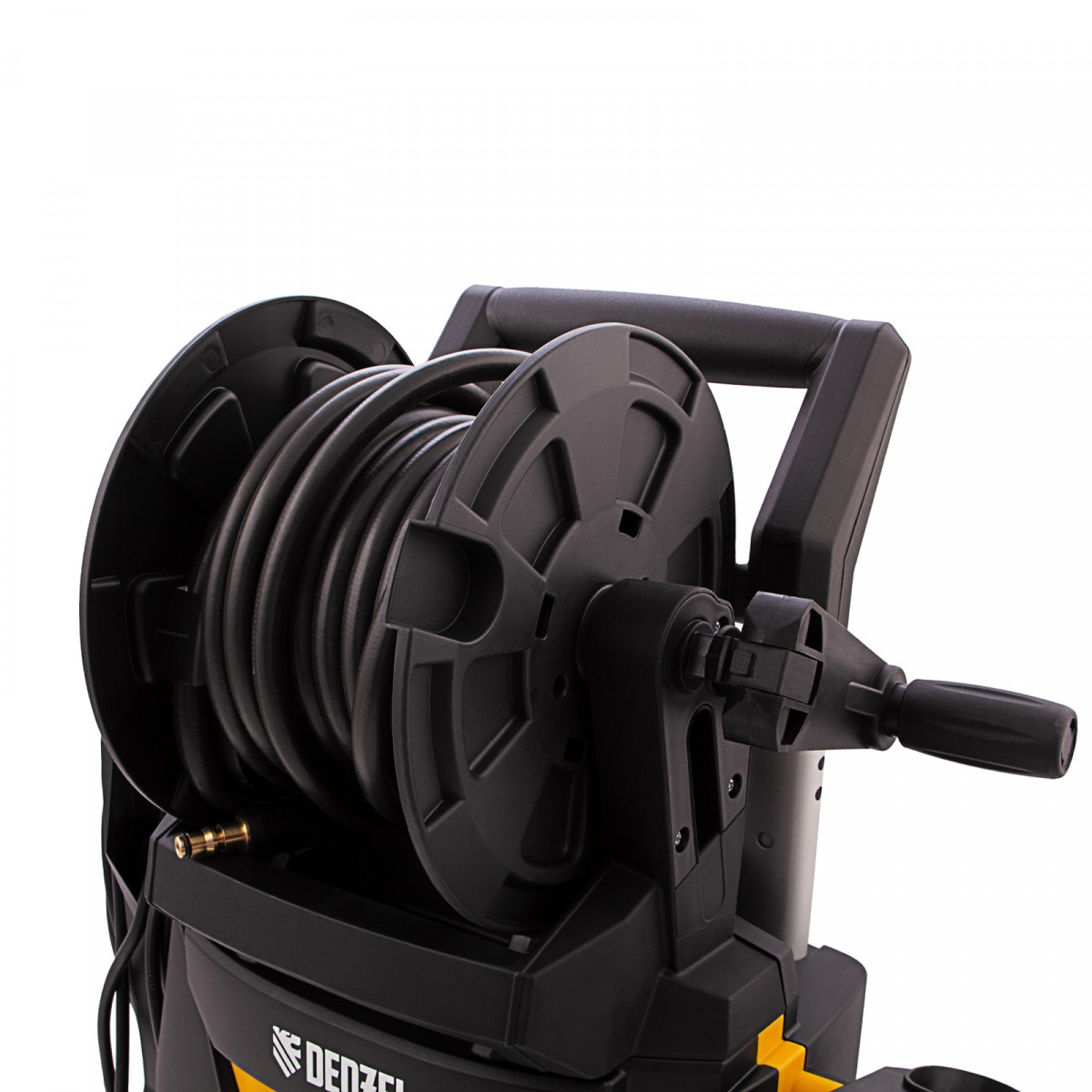 Моечная машина высокого давления Denzel R-210iD с асинхронным двигателем и барабаном для шланга оптимально подходит для очищения автомобилей, заборов, дорожек и садового инвентаря. Эффективно справляться с серьезными загрязнениями позволяют мощный мотор 2600 Вт и помпа с производительностью 8 л/мин и максимальным давлением 210 бар.,Отсутствие водопровода поблизости не станет проблемой. Мойка с насосом может производить забор воды из любых емкостей благодаря функции самовсасывания, при этом теряя не более 5% давления. Алюминиевая помпа со стальными плунжерами отличается высокой точностью подгонки деталей, что обеспечивает надежность и стабильное давление на выходе.