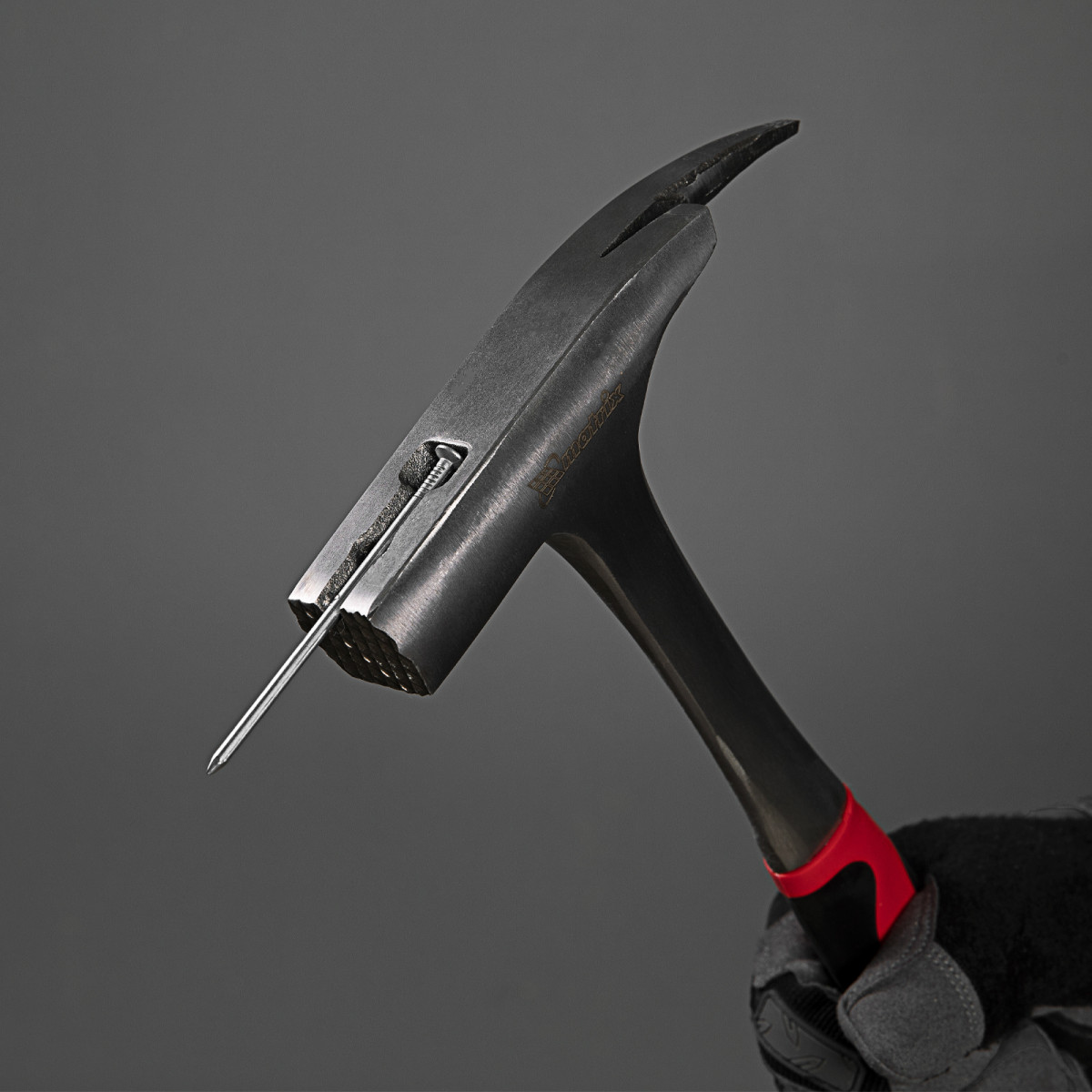 - Магнитный фиксатор удерживает гвоздь в момент первого удара, что позволяет работать в труднодоступных местах, когда нет возможности придержать гвоздь рукой.