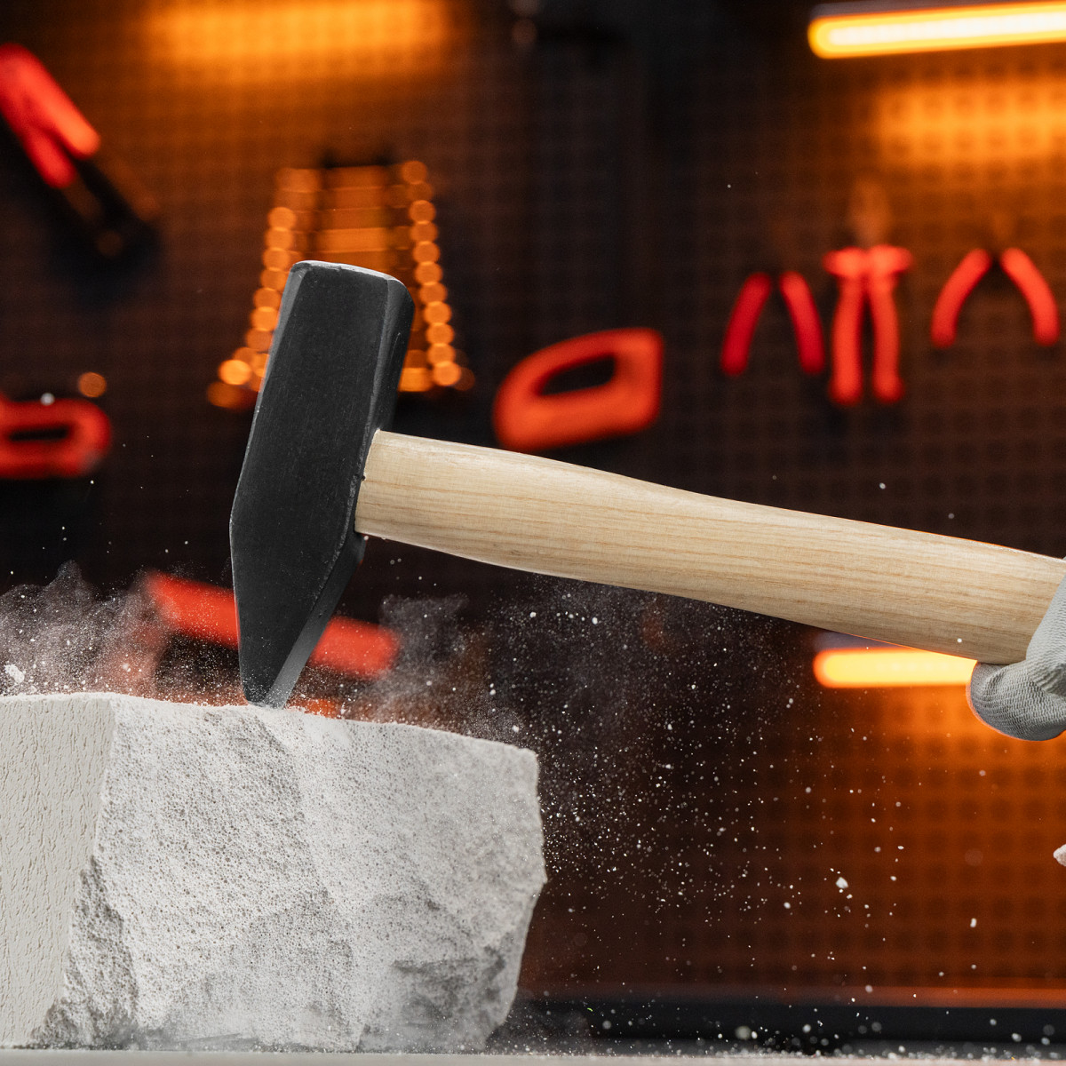 - Прочность — головка изготовлена из среднеуглеродистой стали 45 методом ковки и отфрезерована, рабочие части бойка закалены до твердости 40-45 HRC.