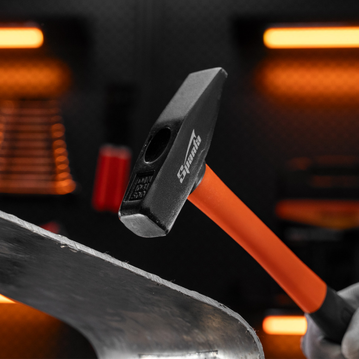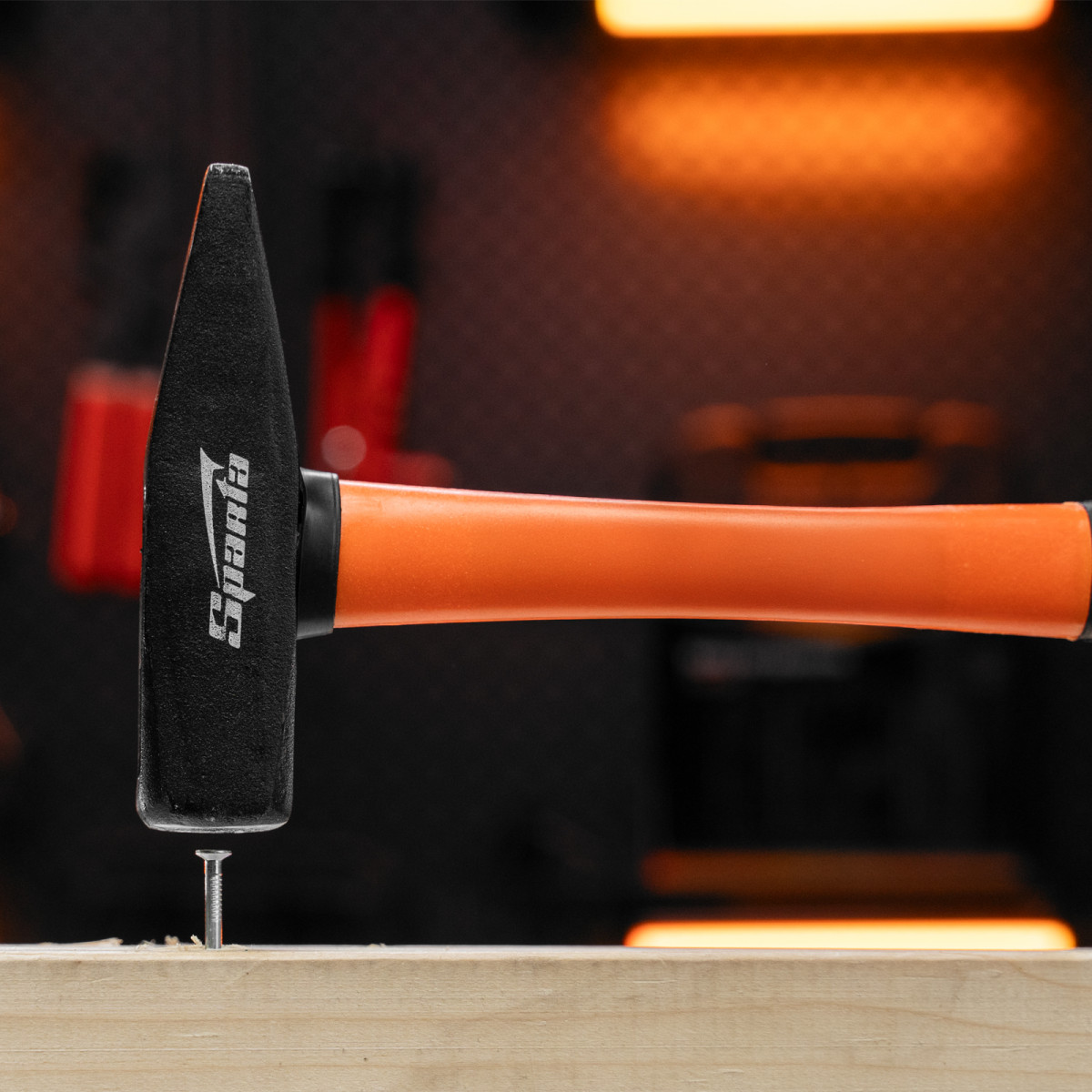 Слесарный молоток Sparta 10375 с бойком весом 500 г и фибергласовой обрезиненной рукояткой — ударный инструмент, который используется для правки металла, сборки мебели и других конструкций, а также для забивания крепежных элементов. Молоток подходит для выполнения профессиональных строительных и ремонтных работ, а также для решения бытовых задач.