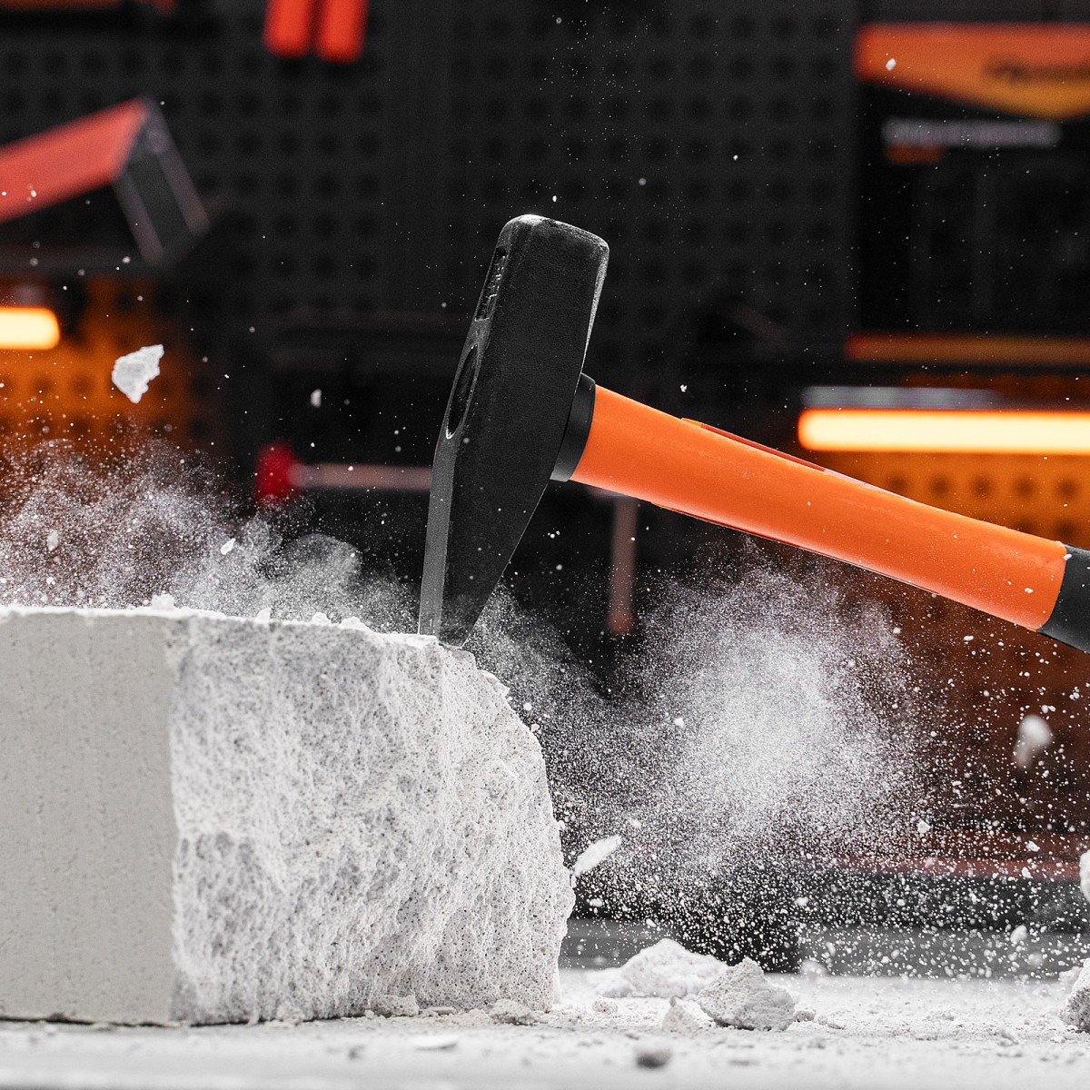 • Комфортная работа — обрезиненная фибергласовая рукоятка снижает отдачу при ударе и не выскальзывает из руки.