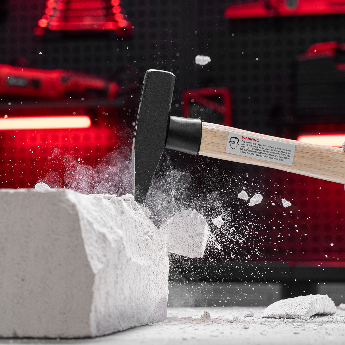 - Надежная конструкция — рукоятка расклинена, головка дополнительно зафиксирована эпоксидным клеем, увеличенная «юбка» в месте всада защищает рукоятку в случае промаха при ударе.
