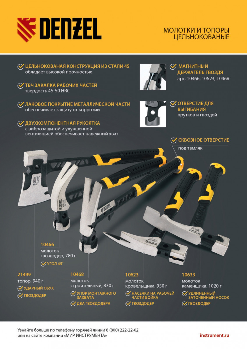 Цельнокованый строительный молоток-гвоздодер Denzel 10468 с бойком весом 450 г, с магнитом и двухкомпонентной обрезиненной рукояткой, используется при проведении строительных и монтажных работ. Благодаря магнитному фиксатору инструмент позволяет наживить гвоздь, не придерживая его рукой.