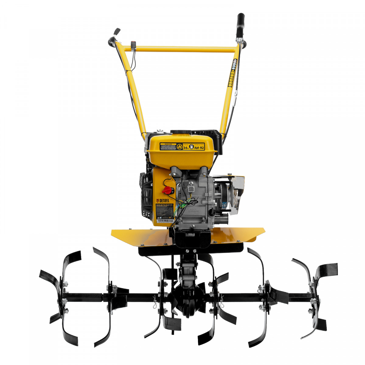 - Надежность — мощный и экономичный 4-тактный OHV-двигатель Denzel Long Life с воздушным охлаждением обеспечивает стабильную работу на протяжении длительного времени.