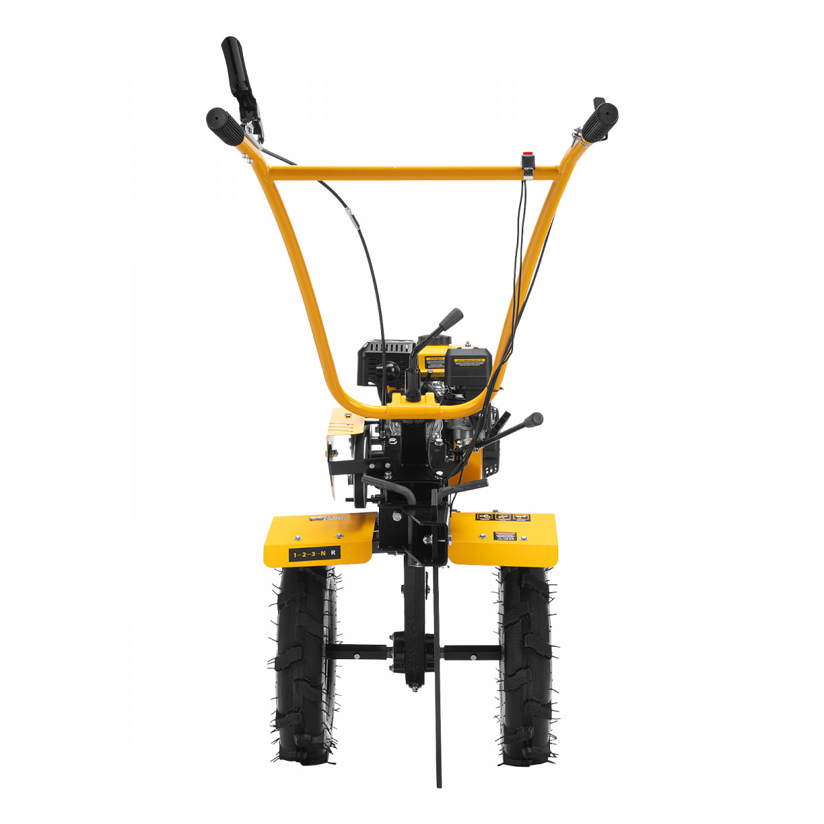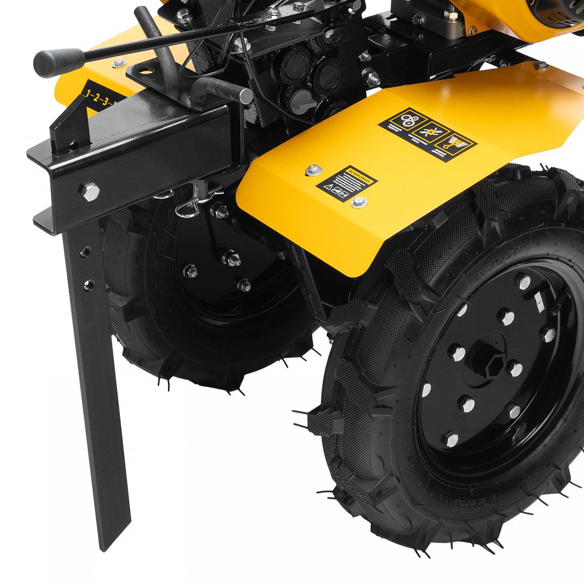 - Эффективная работа на любых типах грунта — мотоблок оснащен мощным и экономичным OHV-двигателем Denzel Long Life и стальными закаленными фрезами, не требующими заточки в течение всего срока эксплуатации.