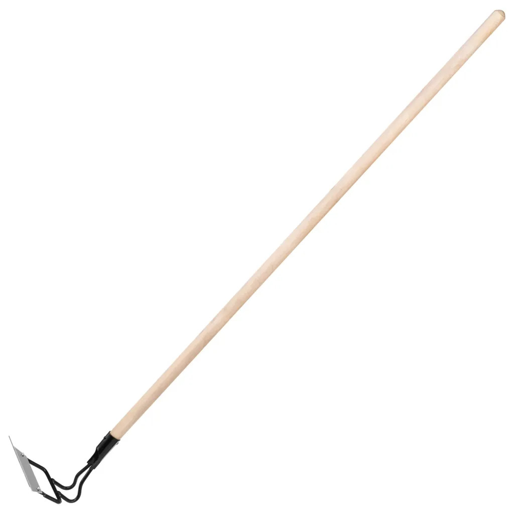 Мотыга Сибртех 62329 из нержавеющей стали, размером 200 х 50 х 1300 мм, с деревянным черенком, используется для рыхления почвы и уничтожения сорняков, а также окучивания растений. Прочный и устойчивый к коррозии инструмент прослужит долго. Черенок уменьшает нагрузку на позвоночник при длительной эксплуатации. Мотыга пригодится для ухода за садово-огородными культурами. Преимущества: - Эффективная работа — режущая кромка остро заточена, поэтому мотыга легко срезает сорняки и рыхлит даже плотную почву. - Долговечность — черенок изготовлен из древесины твердых пород, тулейка и державка покрыты порошковой эмалью для защиты от коррозии. - Прочная конструкция — полотно надежно соединено с державкой с помощью заклепок. - Комфортная эксплуатация — отшлифованный черенок удобно держать в руках.