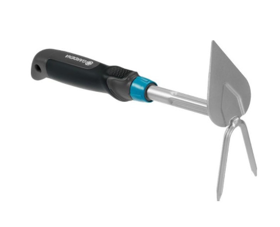 Ручная мотыжка используется для рыхления грядок при посадке и дальнейшем уходе за растениями. Рабочая часть инструмента изготовлена из стали высокого качества и покрыта дюропластом для защиты от коррозии. Рукоять эргономичной формы с элементами из мягкой пластмассы имеет ограничитель на конце для предотвращения соскальзывания ладони во время работы.