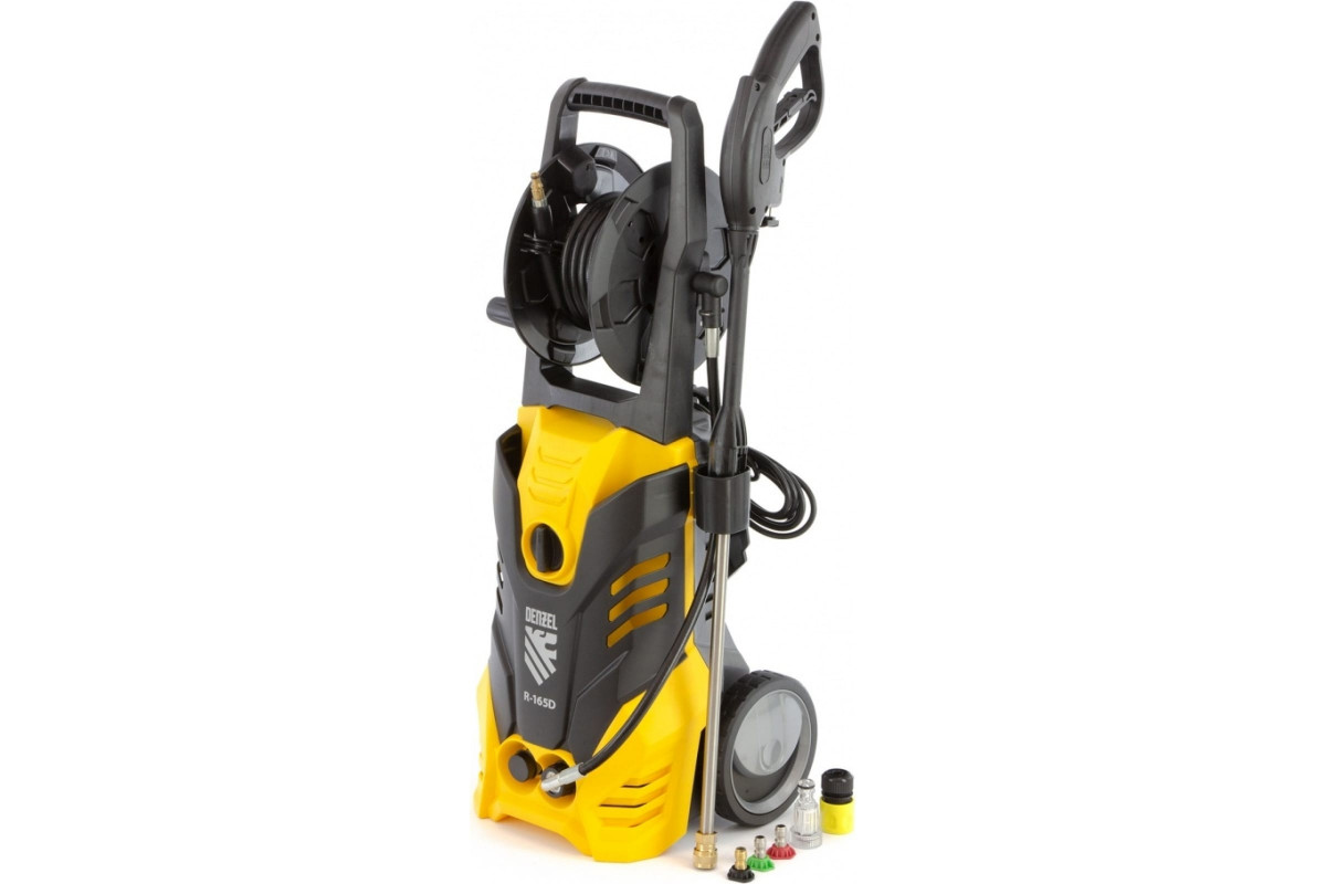 Моечная машина высокого давления DENZEL R-165D 58235 применяется для очистки внедорожников, фасадов и дорожек.Оснащена колесами и удобной ручкой для быстрого перемещения по территории.Алюминиевая помпа повышают срок службы агрегата.Для хранения или регулировки рабочей длины шланга можно его наматывать на специальную катушку с помощью удобной рукоятки.