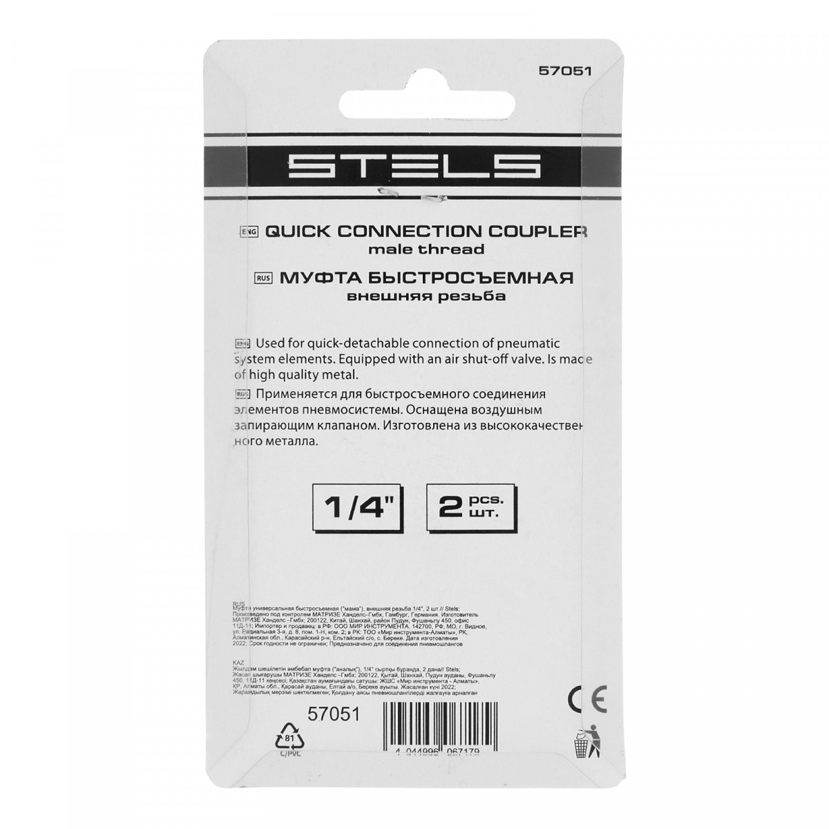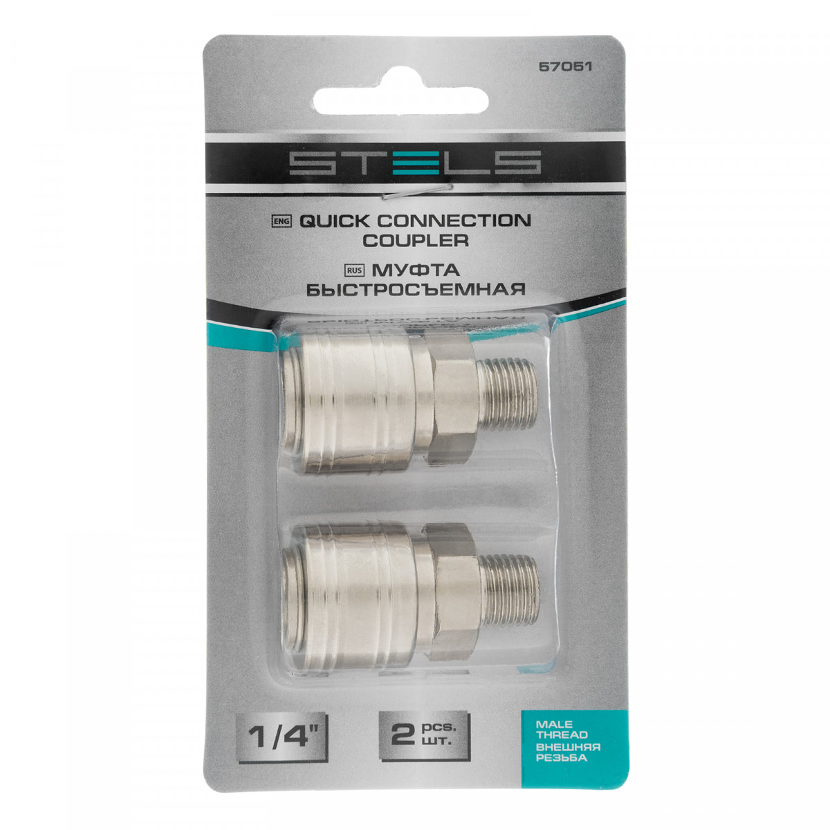 Муфта универсальная быстросъемная ("мама") 1/4, внешняя резьба, 2 шт, Stels