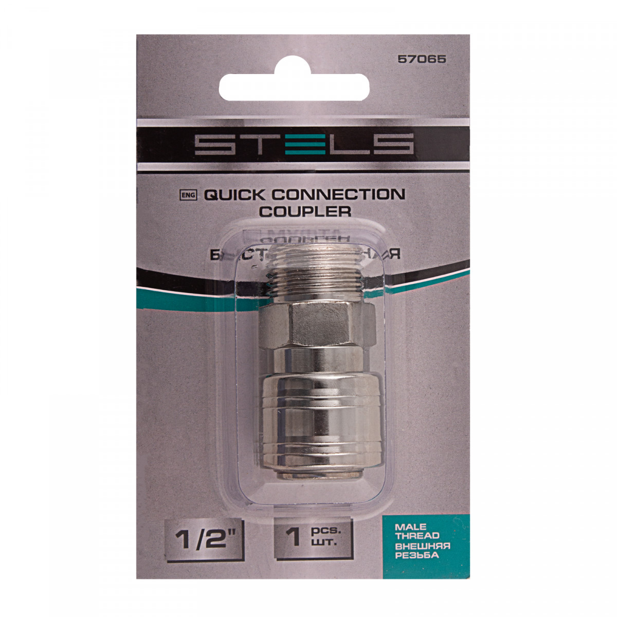 Муфта универсальная быстросъемная ("мама") внешняя резьба 1/2, 1 шт, Stels