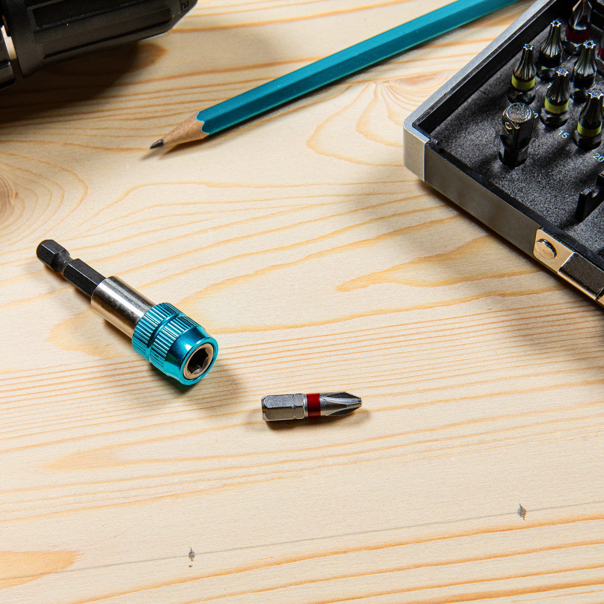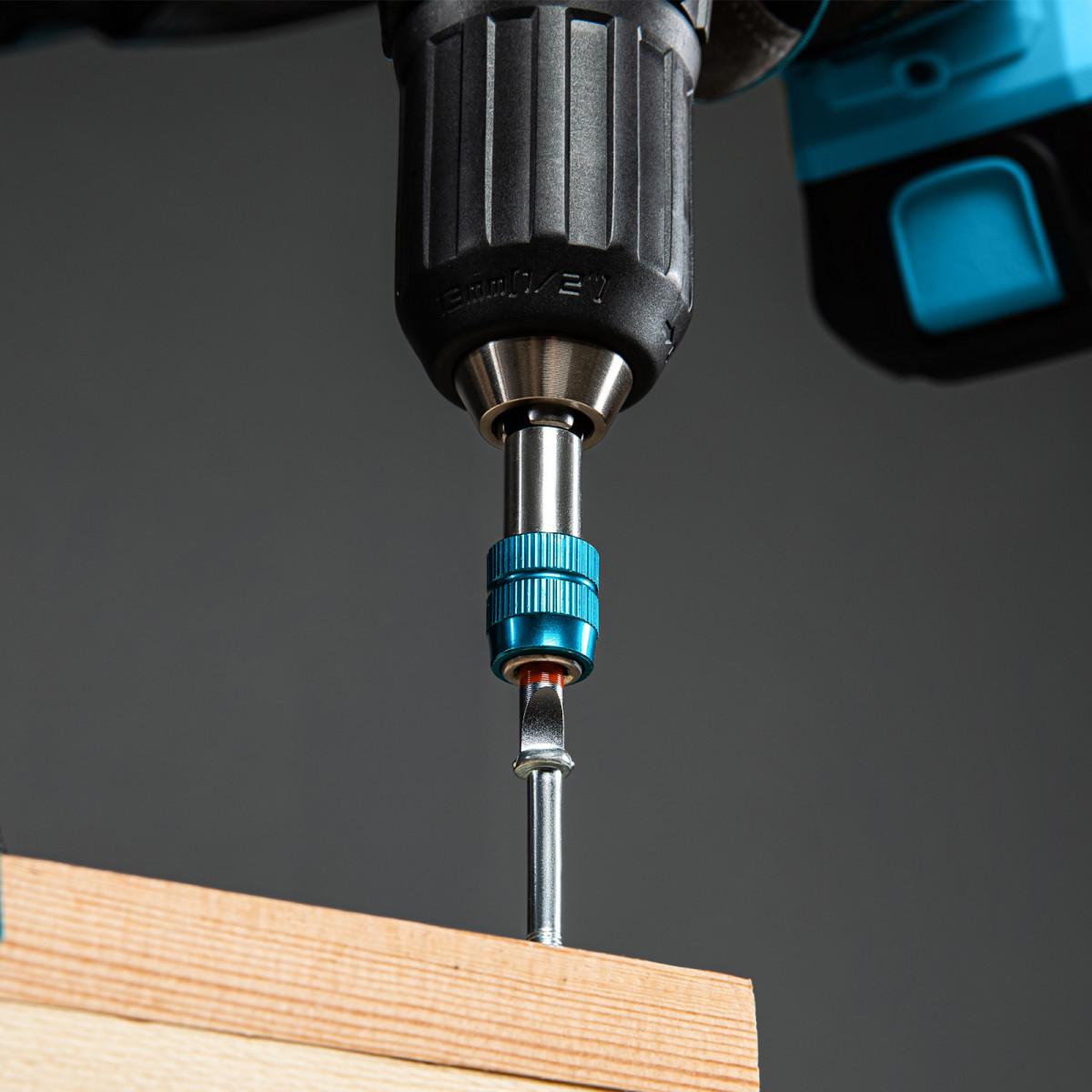 - Удобная работа даже в труднодоступных местах — битодержатель с магнитом и быстрозажимным механизмом обеспечивает устойчивую фиксацию насадок.