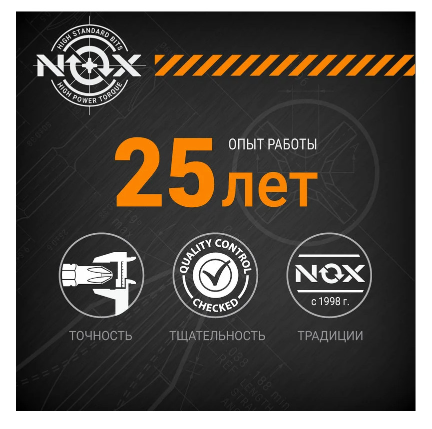 Бита NOX COREBIT – профессиональная бита для регулярных крепежных работ. Изготовлена из легированной стали марки S2, обладающей повышенной прочностью и износостойкостью. Твёрдость стали по шкале Роквелла 58-62 HRC. Шестигранный хвостовик ¼ HEX исключает проскальзывание оснастки в патроне электроинструмента. Биты NOX изготовлены методом фрезеровки , что обеспечивает точность формы биты в соответствии со стандартом DIN и гарантирует высокий ресурс биты. Подходит для работы электродрелью со стандартным трёхкулачковым зажимным патроном и шуруповёртом с шестигранным патроном для быстрой смены насадки.