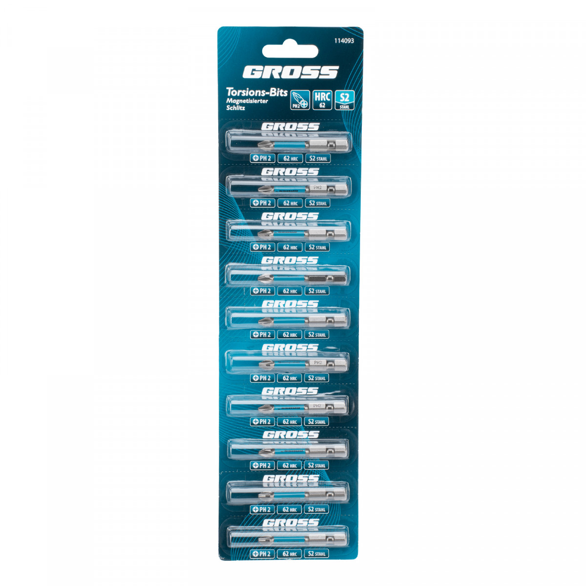 Набор бит торсионных PH2x50 мм, для ударных шуруповертов, отрывн., 10 шт Gross