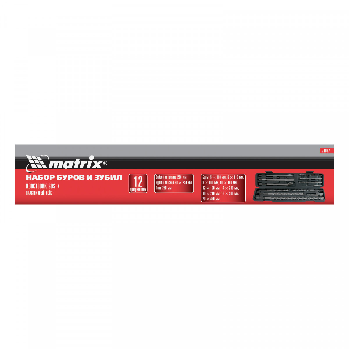 Набор буров по бетону, 5-6 х 110, 8-10-12 х 160, 14-16 х 210, 18 х 300, 20 х 450 мм, зубила, SDS Plus Matrix