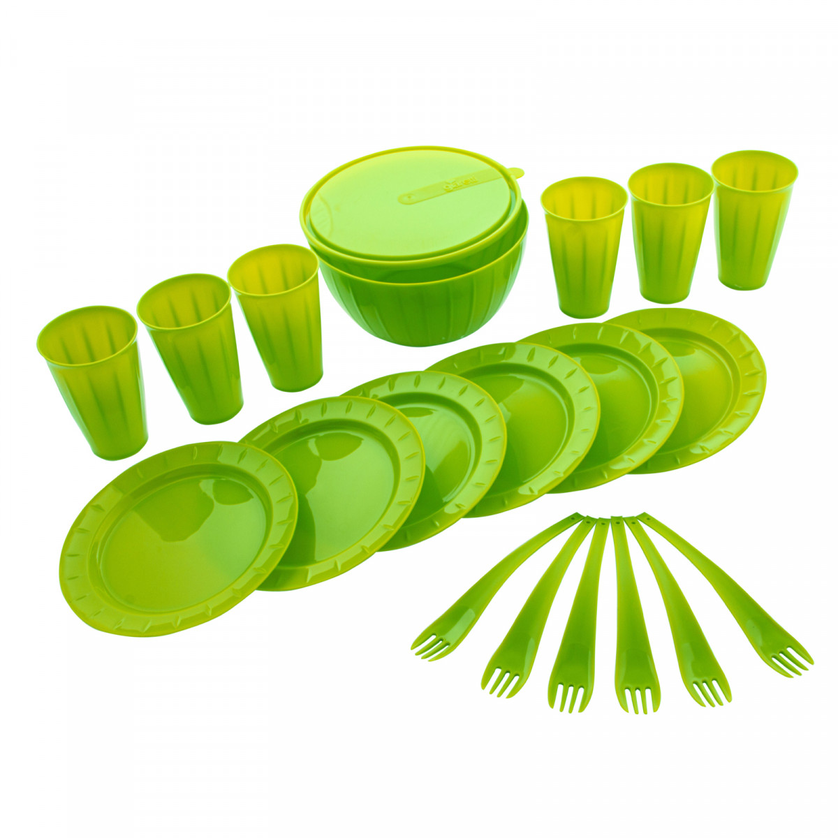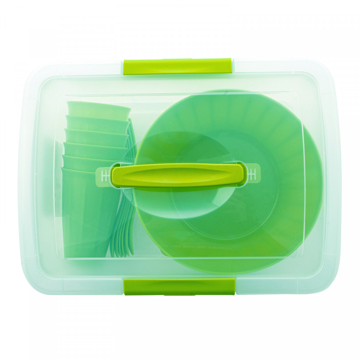 Контейнер - 1 штКрышка - 1 штТарелка - 6 штСтакан - 6 штВилка - 6 шт
