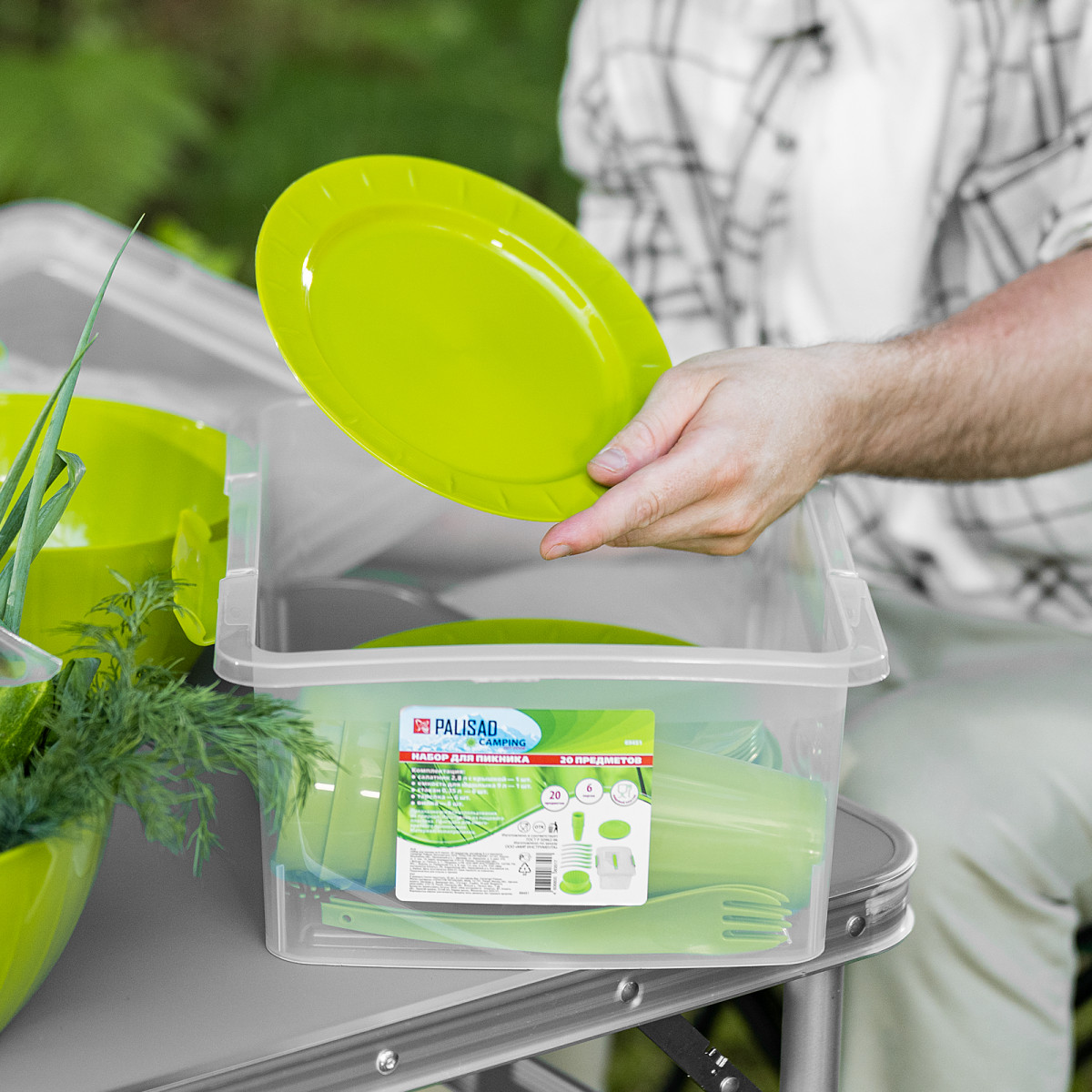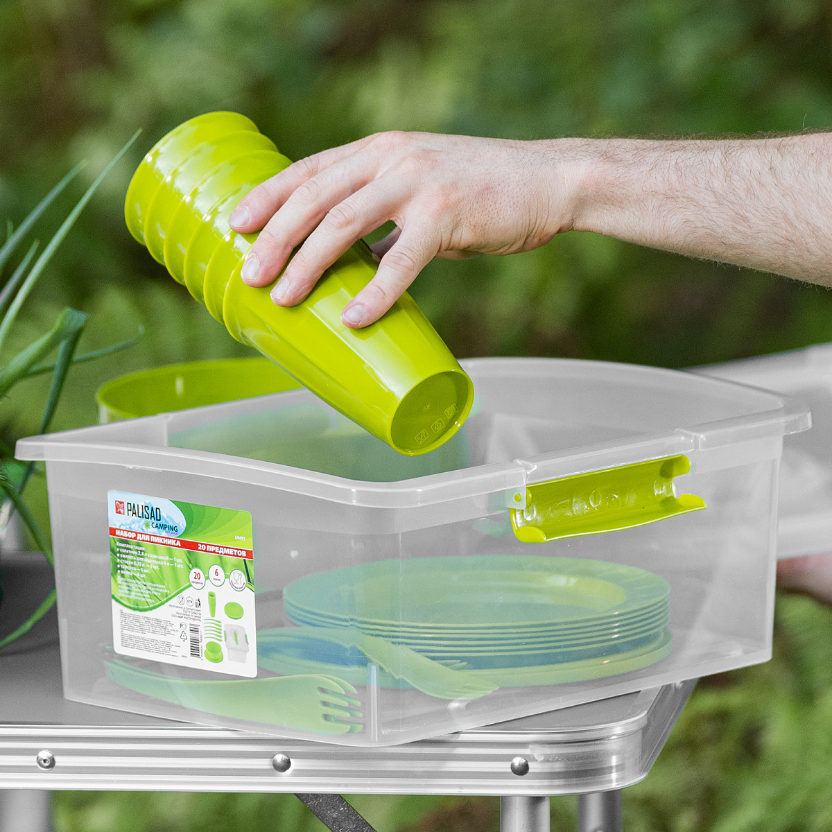 Набор для пикника на 6 персон, 20 предметов, контейнер 9 л в комплекте, Camping Palisad