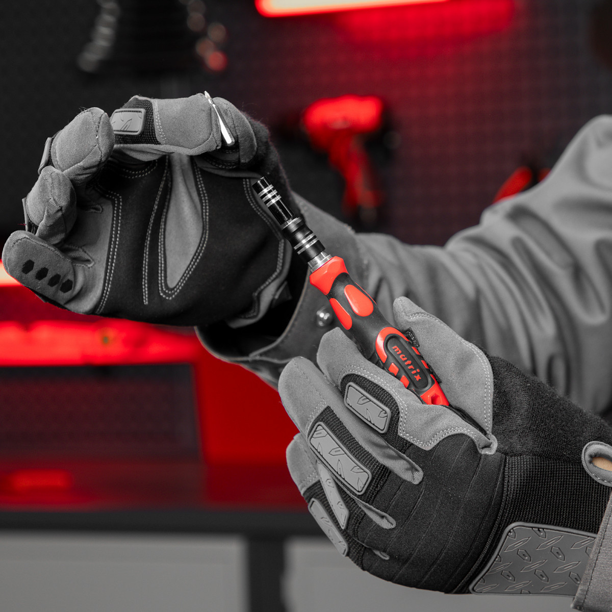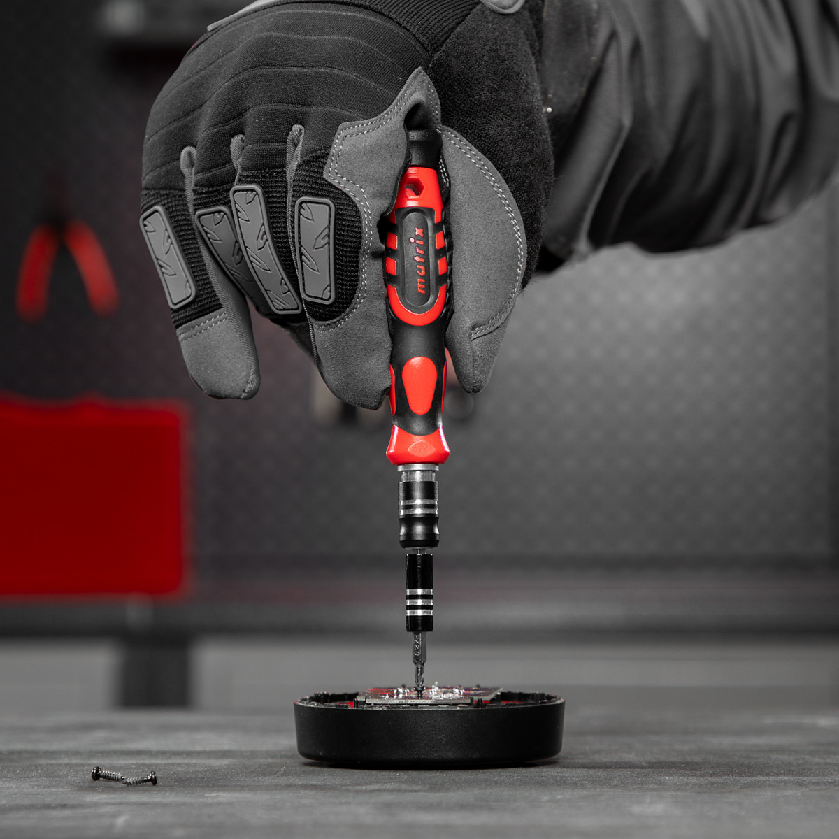 • Удобная эксплуатация — вращающийся затыльник позволяет поворачивать отвертку перебором пальцев.
