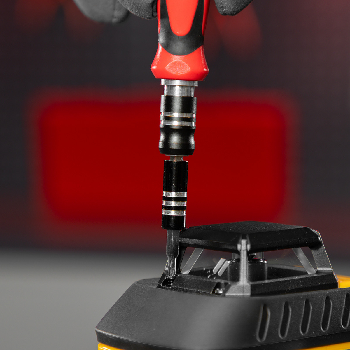 • Намагниченные биты — металлический крепеж легко доставать из углублений и направлять одной рукой.