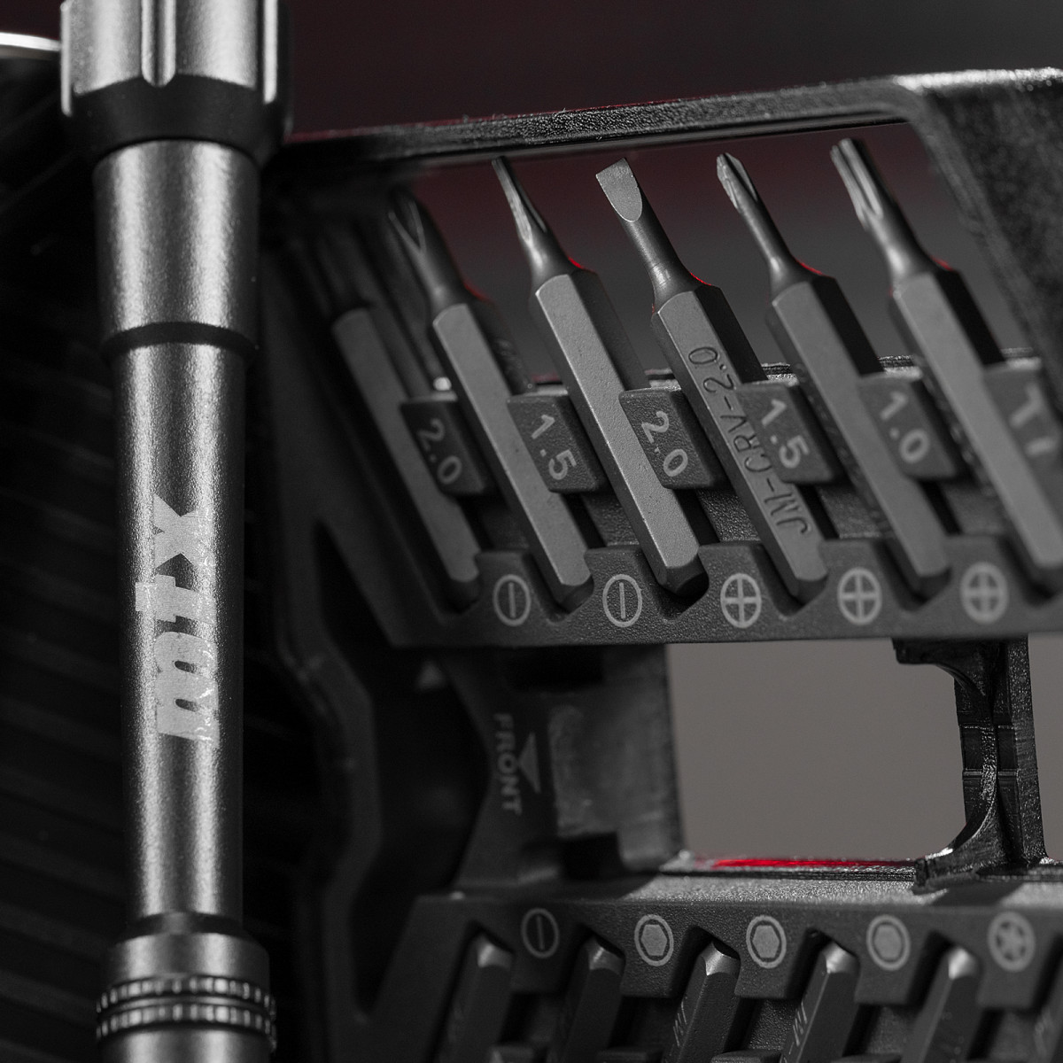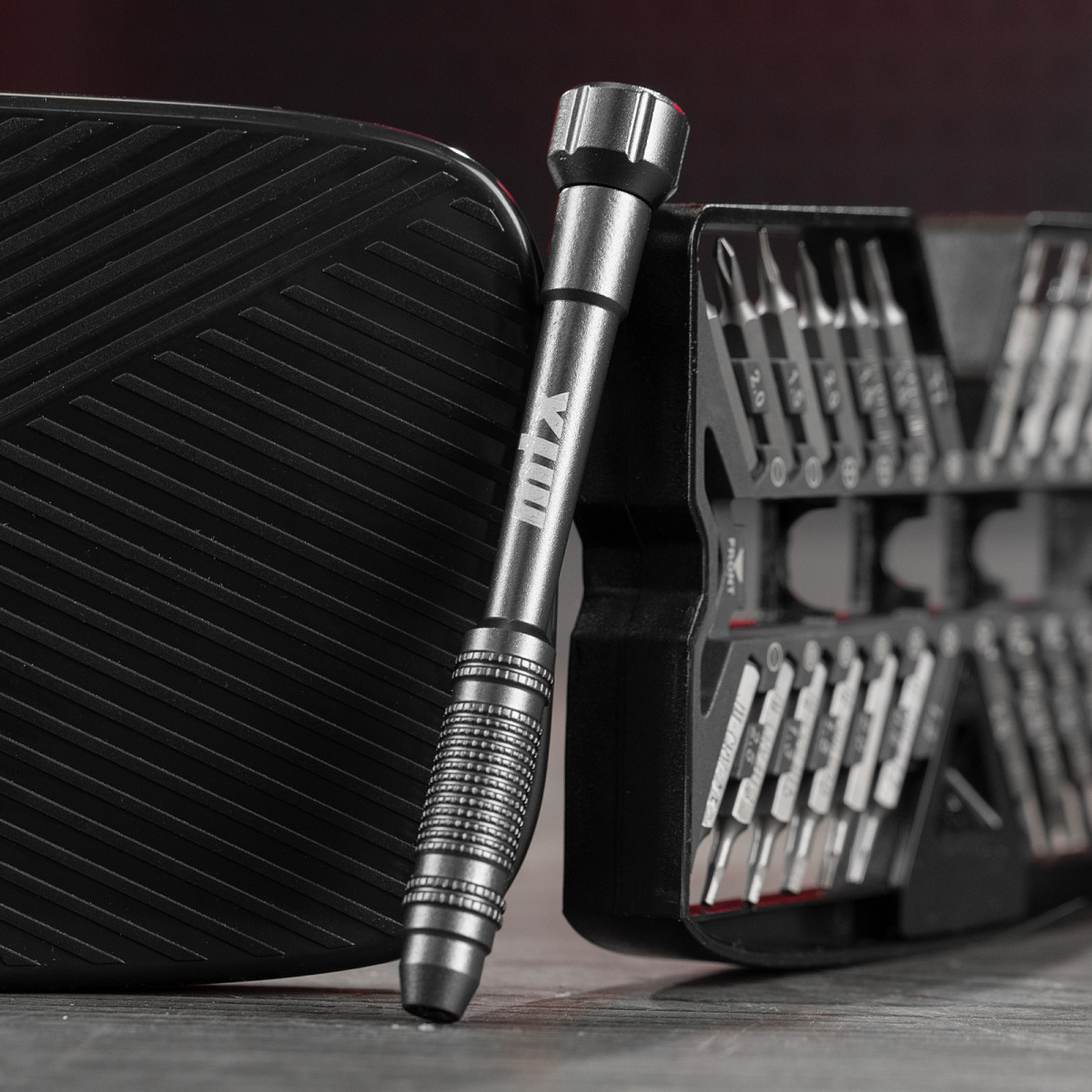 Набор для точных работ 26 в 1 MTX 135677 содержит 24 биты с наконечниками PH, SL,T, H, Str, Y, St, TR, U, отвертку и пластиковый кейс. С его помощью можно отремонтировать очки, игрушки, портативную и бытовую технику и т.д.
