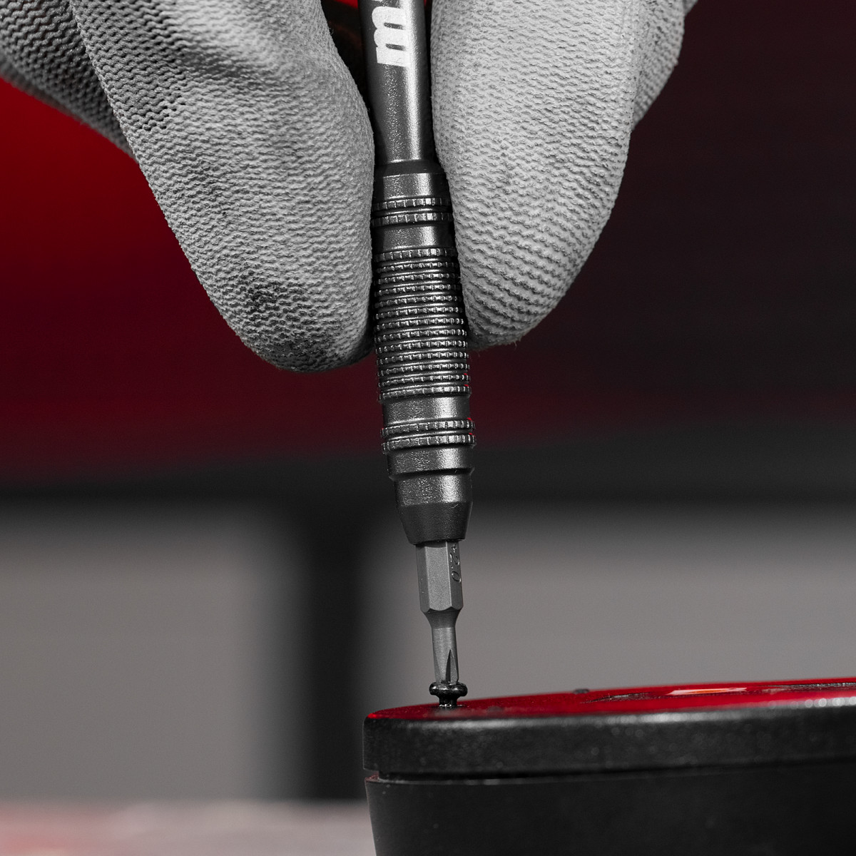 • Намагниченные биты — металлический крепеж легко доставать из углублений и направлять одной рукой.
