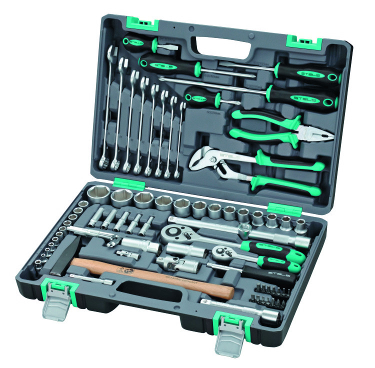 Набор инструментов STELS 76 предметов 14104 - это многофункциональный комплект, который подходит для технического обслуживания автомобиля, а также для проведения ремонта дома и на даче. В наборе 76 предметов, каждый из них изготовлен из высококачественной хромованадиевой стали, стойкой к нагрузкам, долговечной. Биты и отвертки выполнены из стали марки S2. Кейс служит для хранения и переноски инструментов.