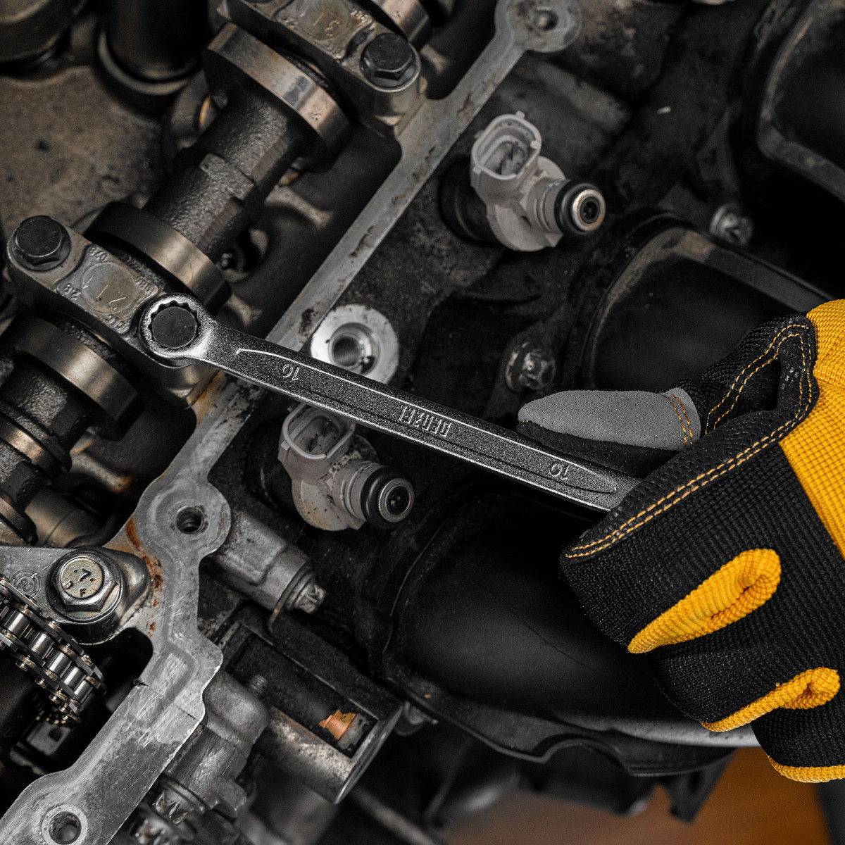 - Прочность — усиленные комбинированные ключи из закаленной хромованадиевой стали выдерживают интенсивное использование.