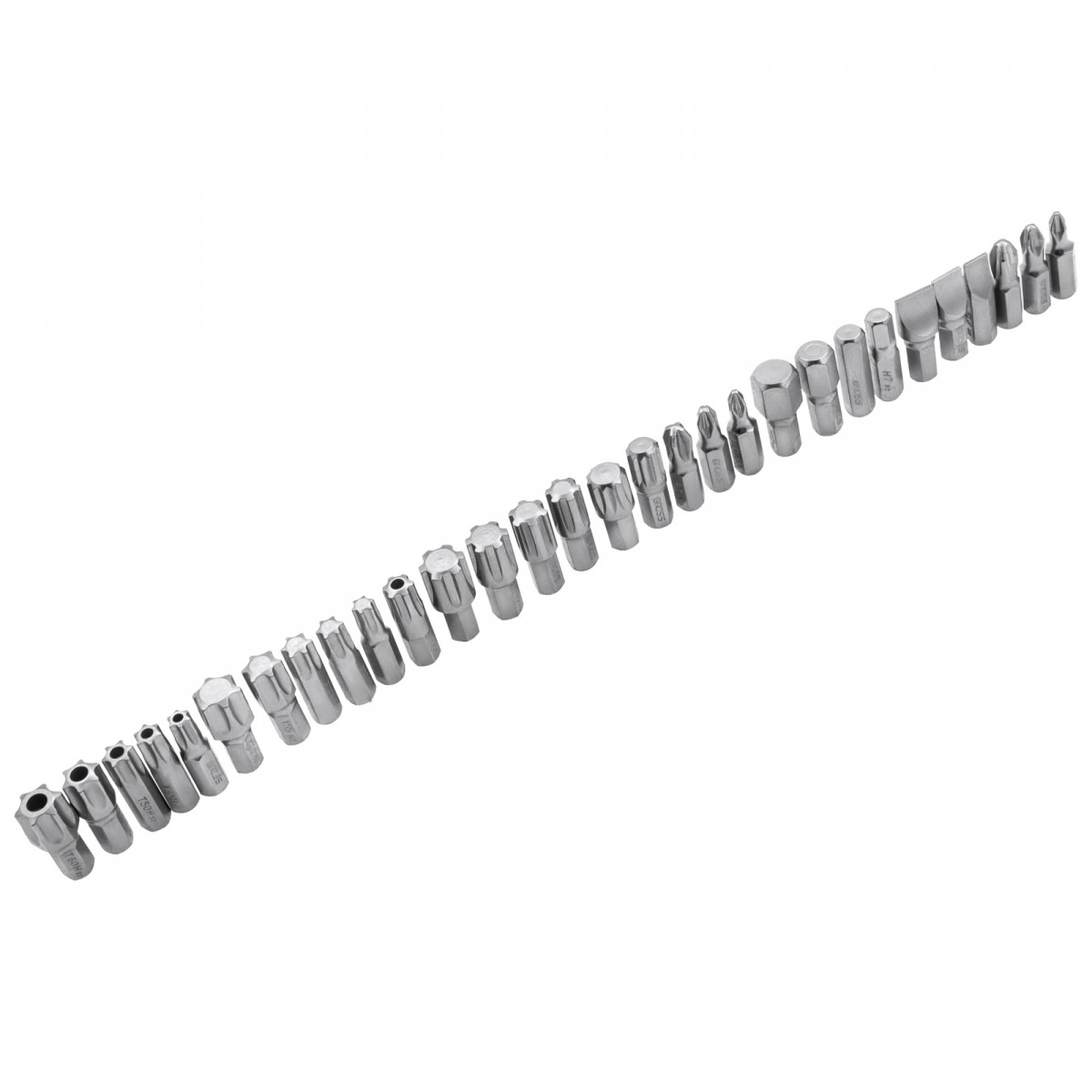 - Исключительная твердость и прочность — биты и шестигранные ключи изготовлены из японской легированной стали S2, остальные элементы набора выполнены из хромованадиевой стали.
