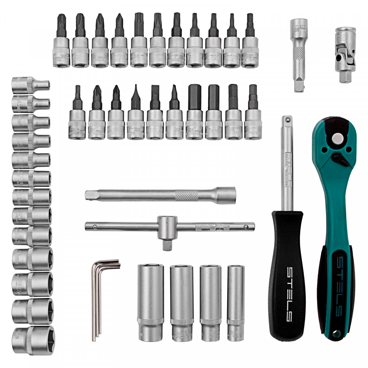 Набор инструментов, 1/4", Cr-V, S2, усиленный кейс, 47 предметов Stels