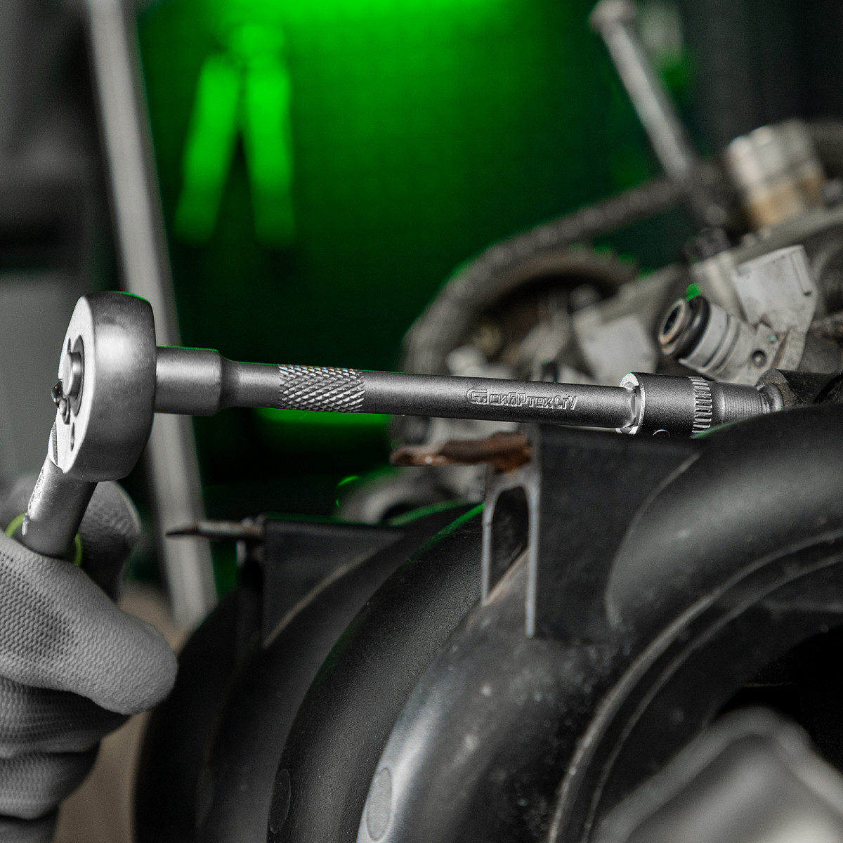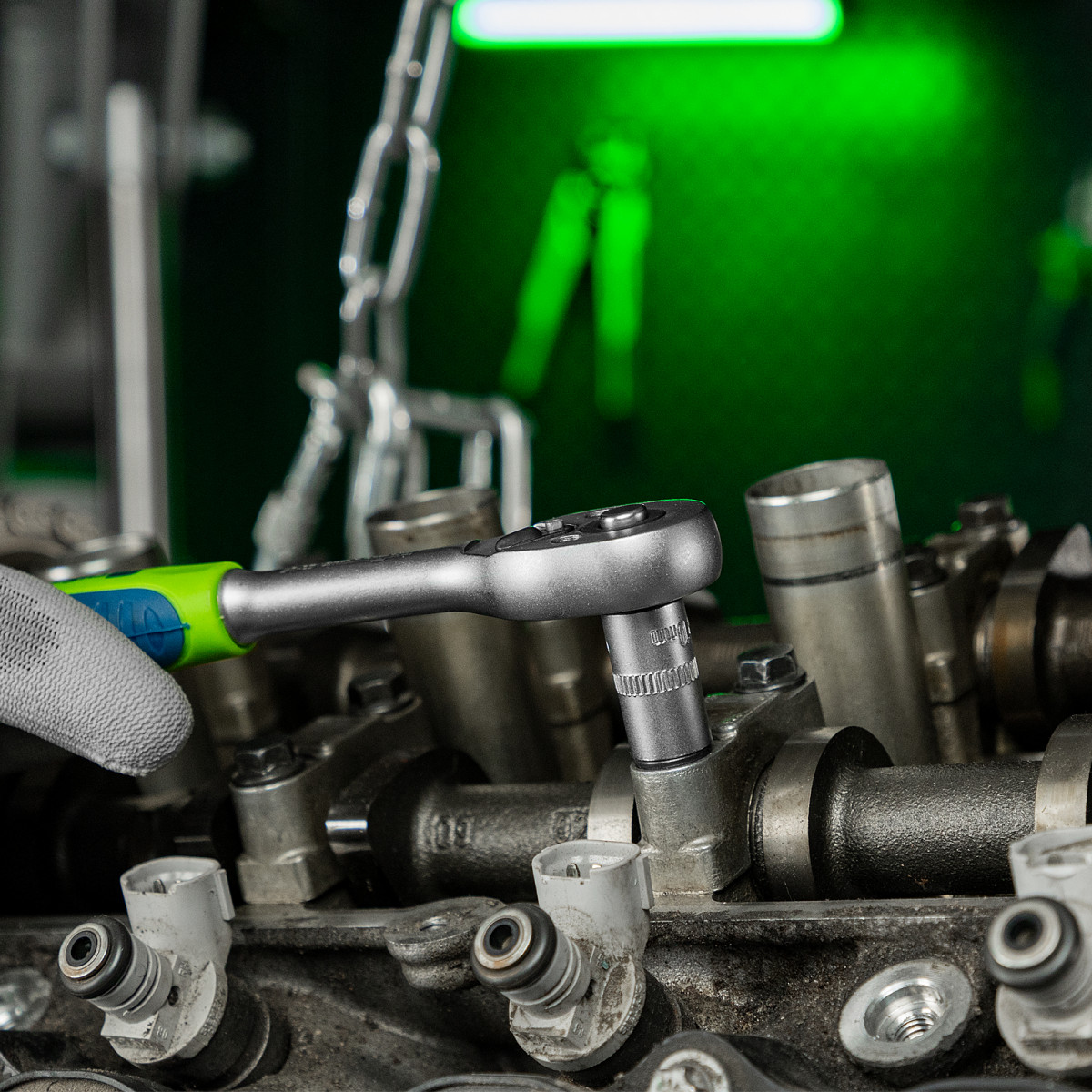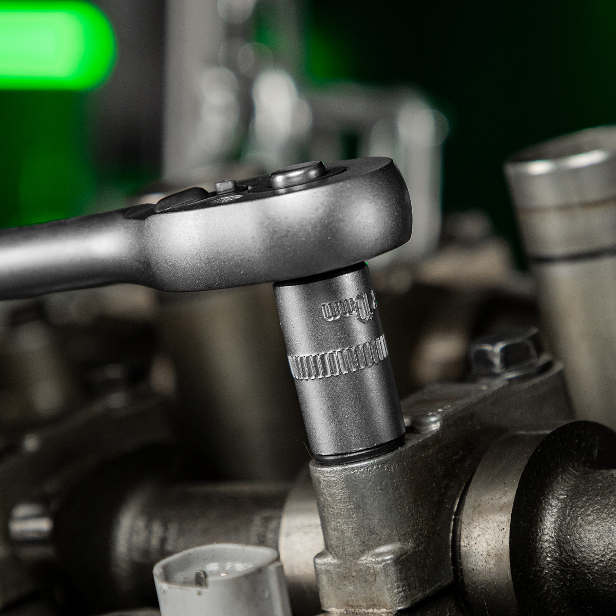 • Комфортная и эффективная работа — ключи-трещотки с 45 зубьями оснащены механизмом быстрого сброса, переключателем реверса с металлическим флажком и двухкомпонентной рукояткой.