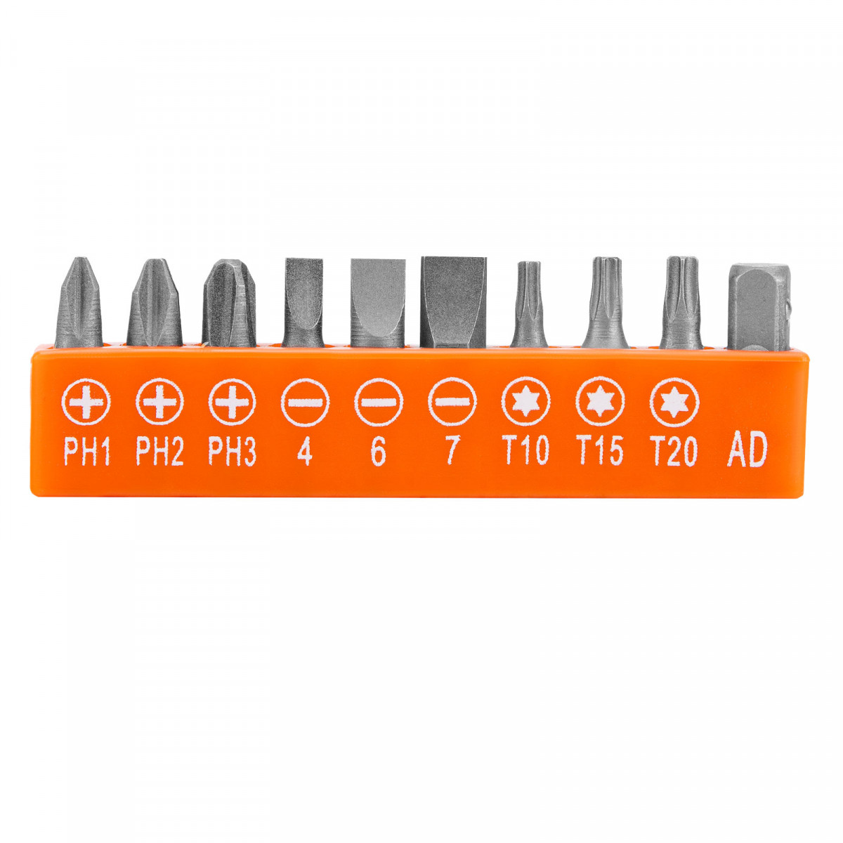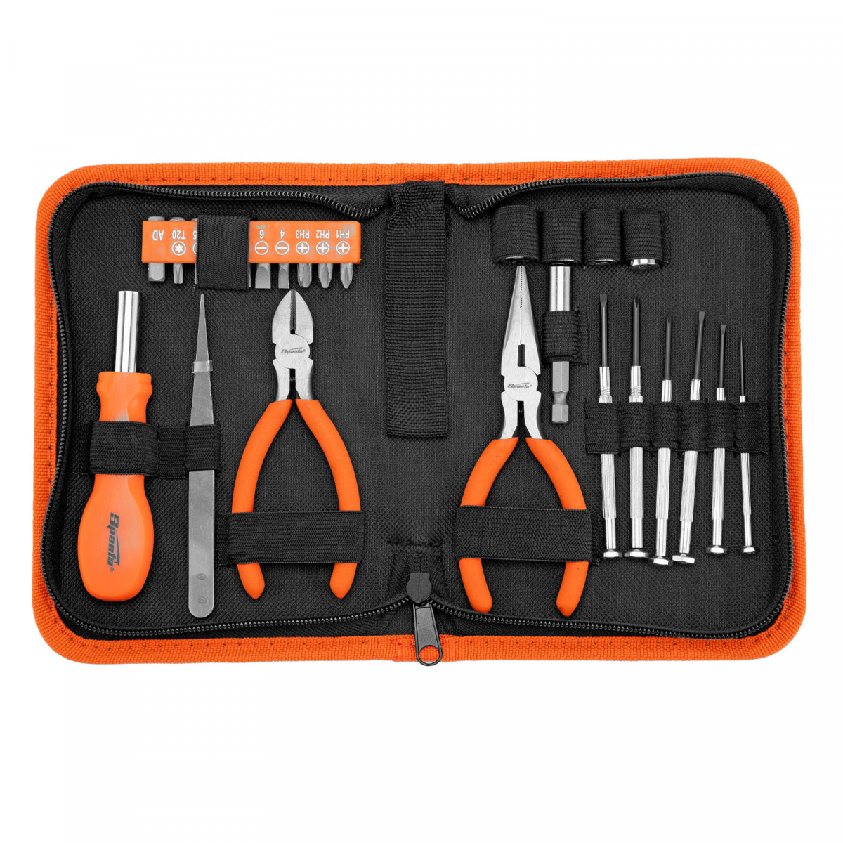 Набор Sparta 13534 включает 25 предметов, необходимых при проведении слесарно-монтажных работ. Он рассчитан на бытовое использование, поэтому будет полезен в хозяйстве. С помощью часовых отверток можно провести точные работы, биты и торцевые головки позволяют осуществить монтаж/демонтаж резьбовых соединений, вспомогательный инструмент пригодится для захвата и удержания деталей, удлинитель используется для работы в труднодоступных местах.