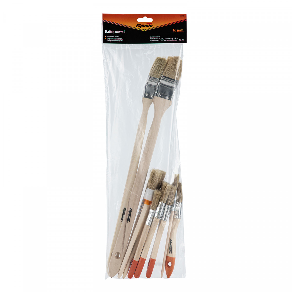 Набор кистей, 10 шт, плоские 3/4"-2" круглые №2, 4 радиаторные 1", 1.5" для масляной краски №2, 6 Sparta