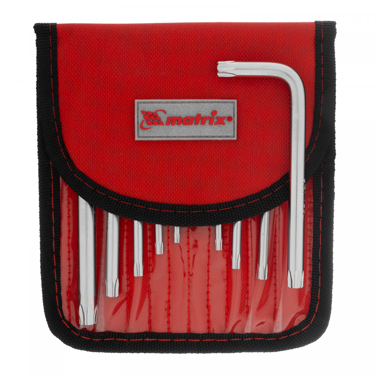 Набор ключей имбусовых Torx -Torx Tamper: 9 шт, T10-T50, CrV, коротких, с сатиновым покрытием, чехол Matrix