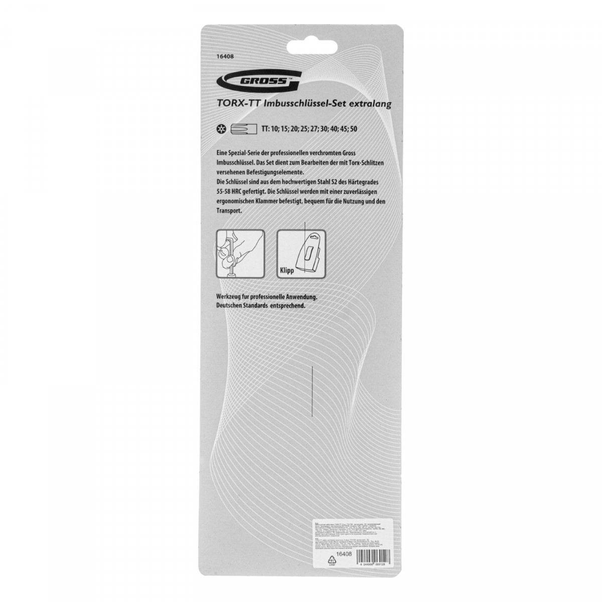 Набор ключей имбусовых Torx -TT, 9 шт: T10-T50, экстра-длинные, S2, сатинированные Gross